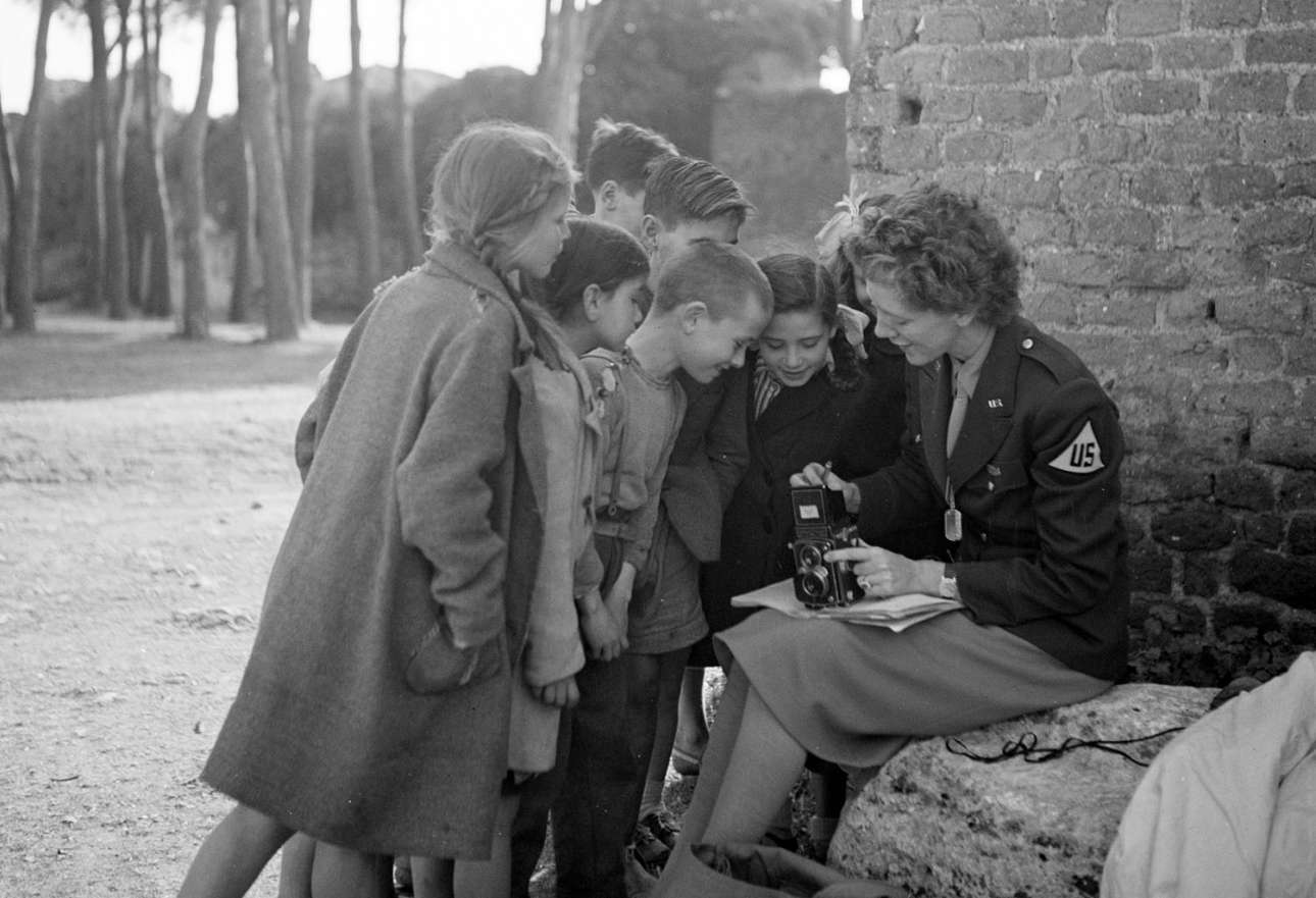 Από την ερωτευμένη Ελίζαμπεθ Τέιλορ μέχρι έναν στρατιώτη που βρίσκει λίγη γαλήνη μέσα στην κόλαση του πολέμου, μαζεύοντας λουλούδια, η δουλειά της εμβληματικής φωτογράφου Τόνι Φρίσελ μας προσφέρει μία μοναδική ματιά στην Ιστορία. Η Φρίσελ υπήρξε φωτογράφος μόδας (στη Vogue από τη δεκαετία του ’30), αλλά στον Β’ Παγκόσμιο Πόλεμο πήγε στην Ευρώπη, καταγράφοντας για τον Αμερικανικό Ερυθρό Σταυρό τις επιπτώσεις των μαχών σε στρατιώτες και αμάχους. Επειτα συνέχισε να φωτογραφίζει διάσημους και καθημερινά στιγμιότυπα, δημιουργώντας μία μνημειώδη συλλογή από 340.000 εικόνες, τις οποίες δώρισε στη Βιβλιοθήκη του Κογκρέσου των ΗΠΑ