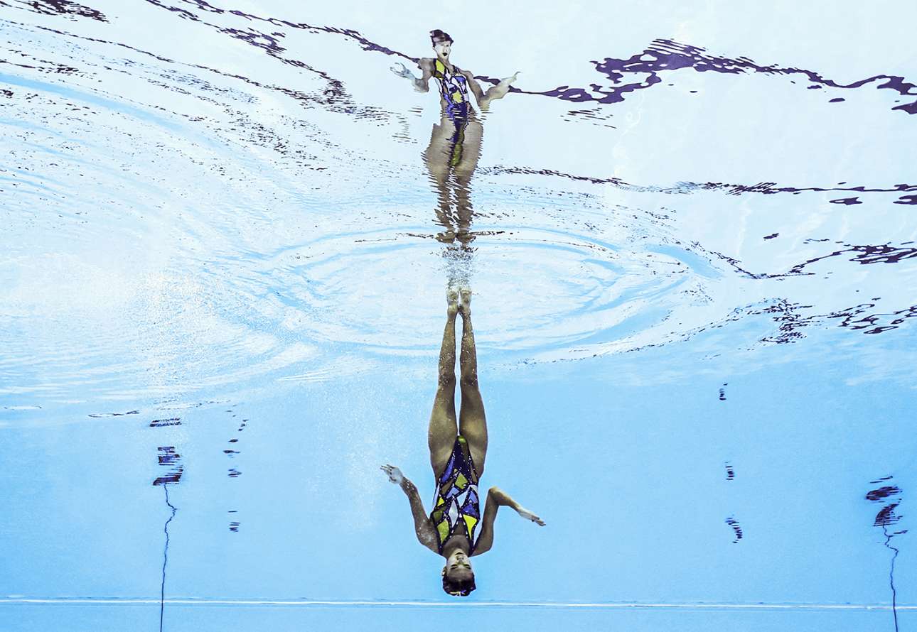 Και άλλο καρέ από την καλλιτεχνική κολύμβηση: οι Ουρουγουανές Αγκουστίνα Μεντίνα και Λουτσία Βερβέρις στην επίδειξή τους κατά τα προημιτελικά