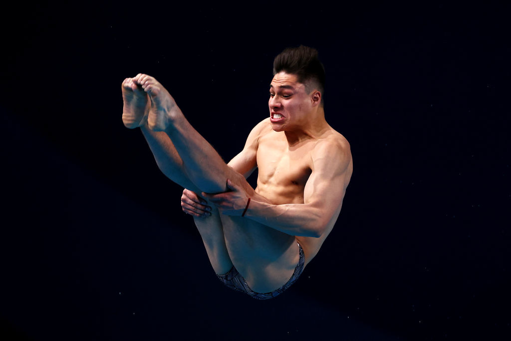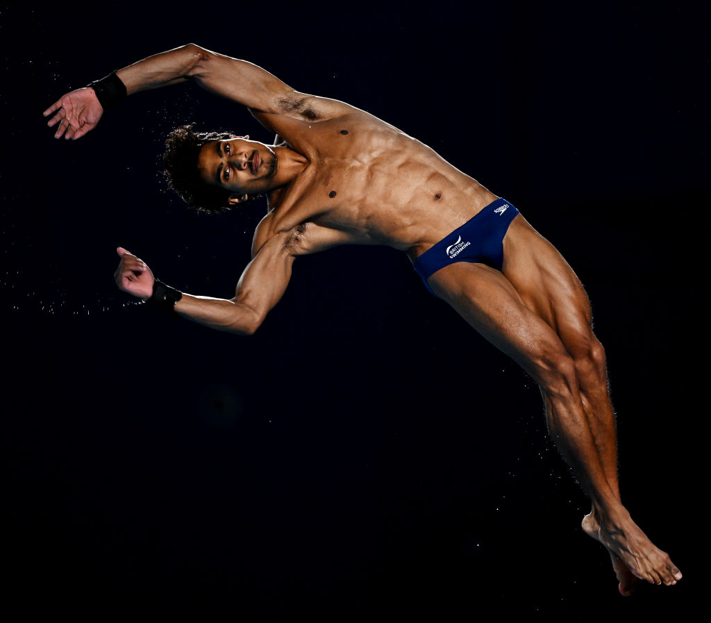 Ο Βρετανός Κάιλ Κοθάρι αγωνίστηκε στον τελικό των καταδύσεων από βατήρα 10 μέτρων και κατέλαβε την έκτη θέση – εδώ μοιάζει να κοιτά κατάματα τον φακό, όμως πρόκειται για οφθαλμαπάτη