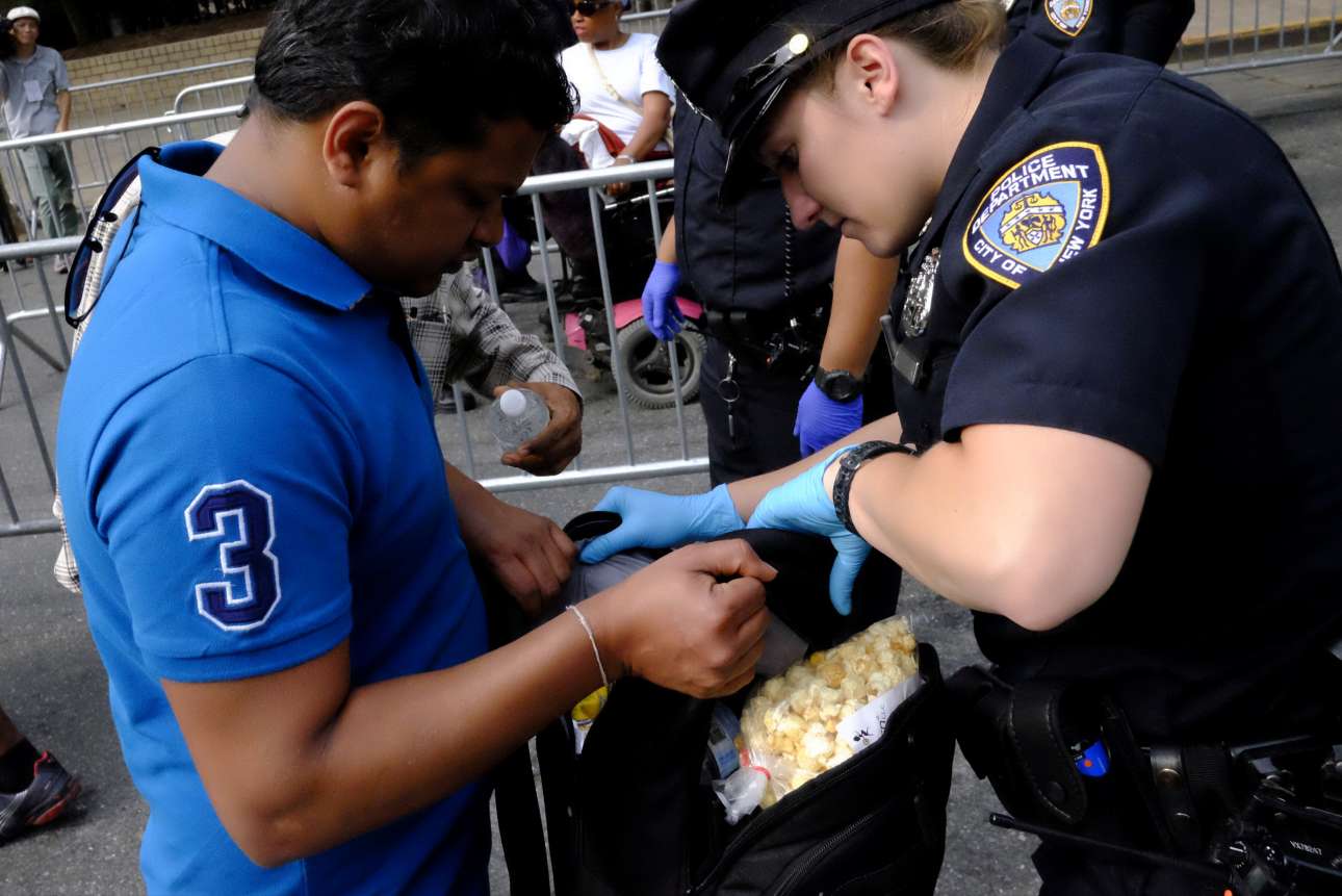 Γιορτή και τρόμος. Ο φόβος για επαπειλούμενο τρομοκρατικό χτύπημα κατά τους εορτασμούς οδήγησε στο να ληφθούν έκτακτα μέτρα ασφαλείας. Εδώ νεοϋορκέζοι αστυνομικοί ελέγχουν τις τσάντες όσων προσέρχονται στις πλατείες για τις γιορτές