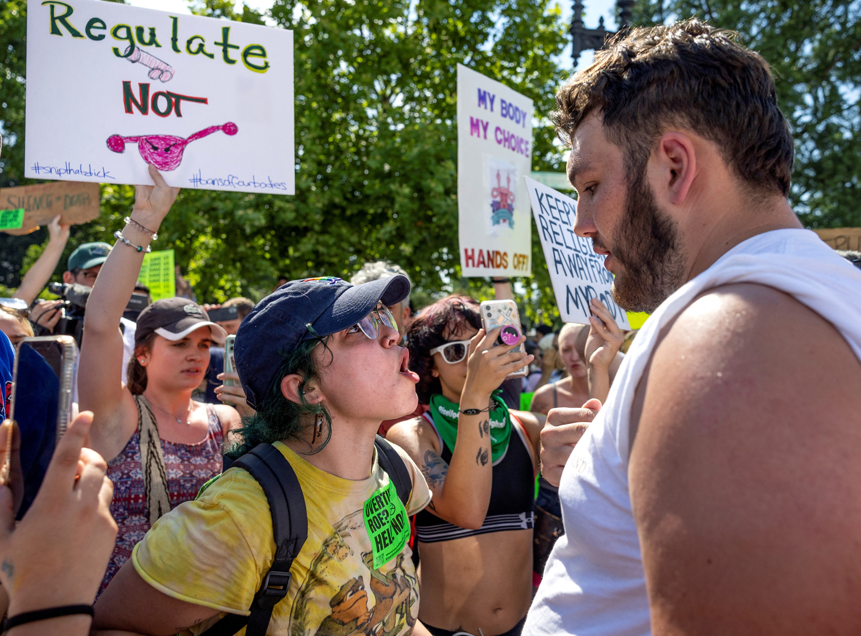 «Κοίτα τη δική σου μήτρα» και «Αμερική, εκεί όπου οι μήτρες ελέγχονται περισσότερο από τα όπλα» φωνάζουν οι δύο ακτιβίστριες