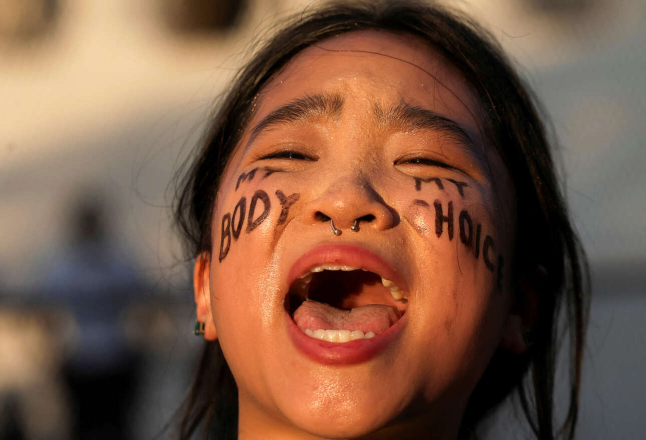 «Σώμα μου, επιλογή μου» γράφει το πρόσωπο της 20χρονης διαδηλώτριας στην Ουάσινγκτον