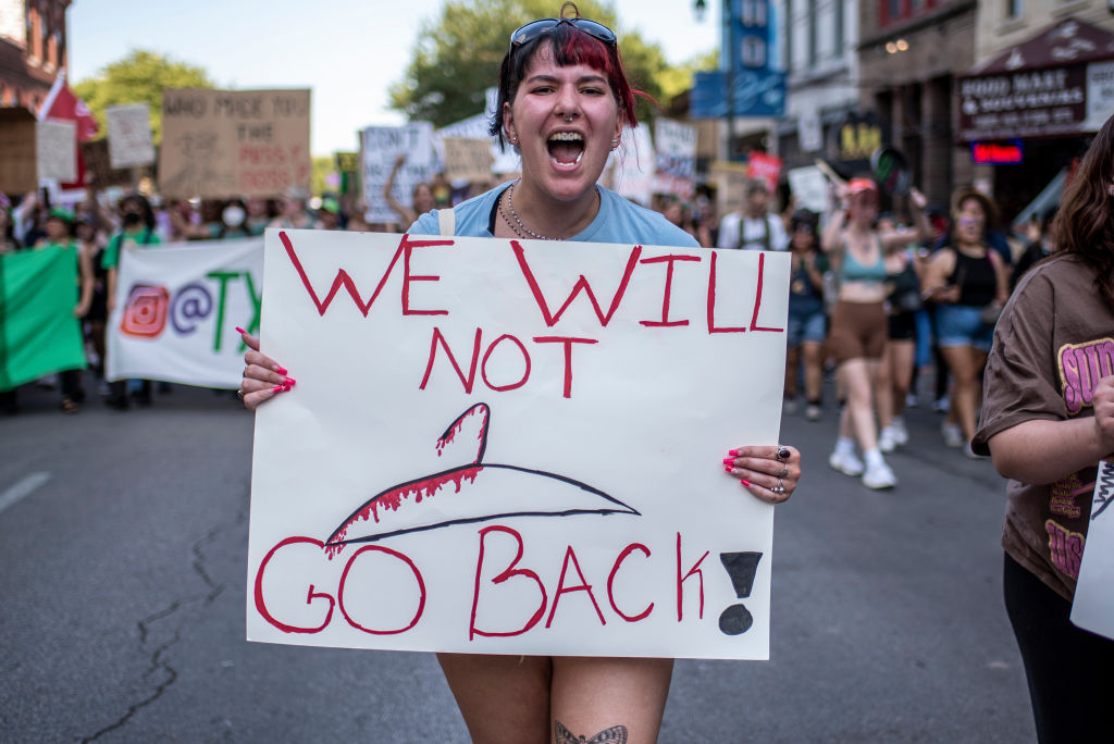 «Δεν θα γυρίσουμε πίσω» γράφει το πλακάτ της νεαρής διαδηλώτριας, καθώς η απόφαση των συντηρητικών ανώτατων δικαστών γυρνάει την Αμερική πολλά χρόνια πίσω...