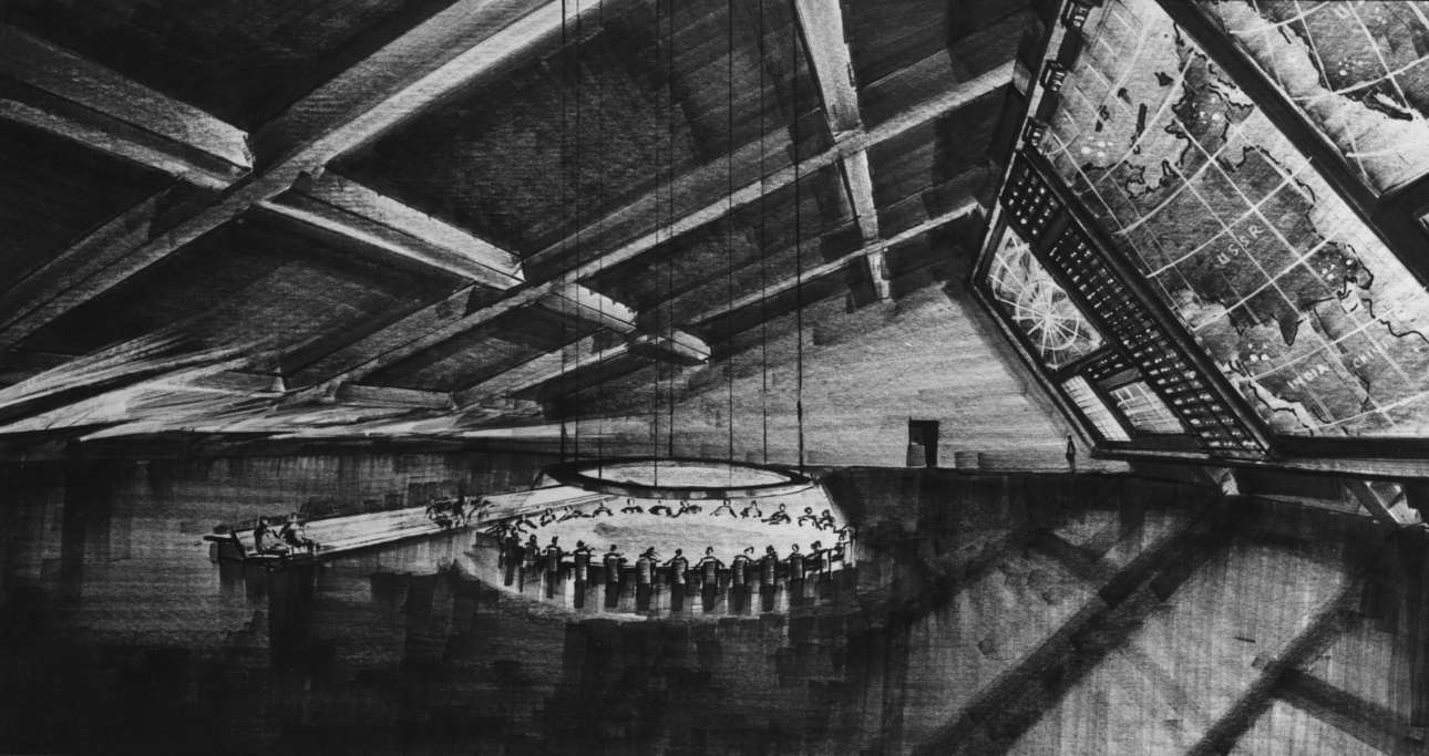 Από τη σύλληψη στην δημιουργία: το τελικό σχέδιο του σκηνογράφου Κεν Ανταμ για την Αίθουσα Πολέμου στην ταινία «SOS Πεντάγωνο καλεί Μόσχα»