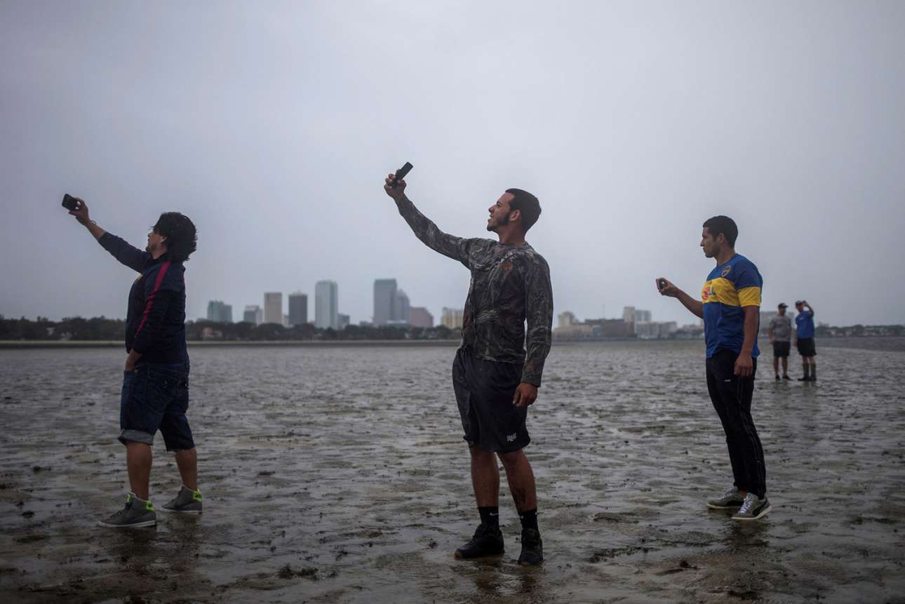 Σέλφι στο τοπίο της απόλυτης θλίψης. Νεαροί φωτογραφίζονται λίγο μετά το πέρασμα του τυφώνα Ιρμα από την πόλη Τάμπα στη Φλόριντα