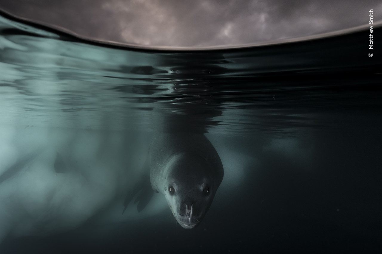 Κάτω από την ίσαλο γραμμή. Νικητής στην κατηγορία Υποβρύχια Φωτογραφία. Ο Μάθιου Σμιθ φωτογράφισε προσεκτικά μια περίεργη φώκια λεοπάρδαλη κάτω από τον πάγο της Ανταρκτικής και χρησιμοποίησε μια ειδικά κατασκευασμένη επέκταση που σχεδίασε για το μπροστινό μέρος του υποβρύχιου εξοπλισμού του. Ηταν η πρώτη του συνάντηση με φώκια λεοπάρδαλη. Η νεαρή φώκια τον πλησίασε αρκετές φορές γεμάτη περιέργεια. «Οταν κοίταξε κατευθείαν στο κέντρο του φακού, ήξερα ότι είχα κάτι καλό» λέει ο φωτογράφος
