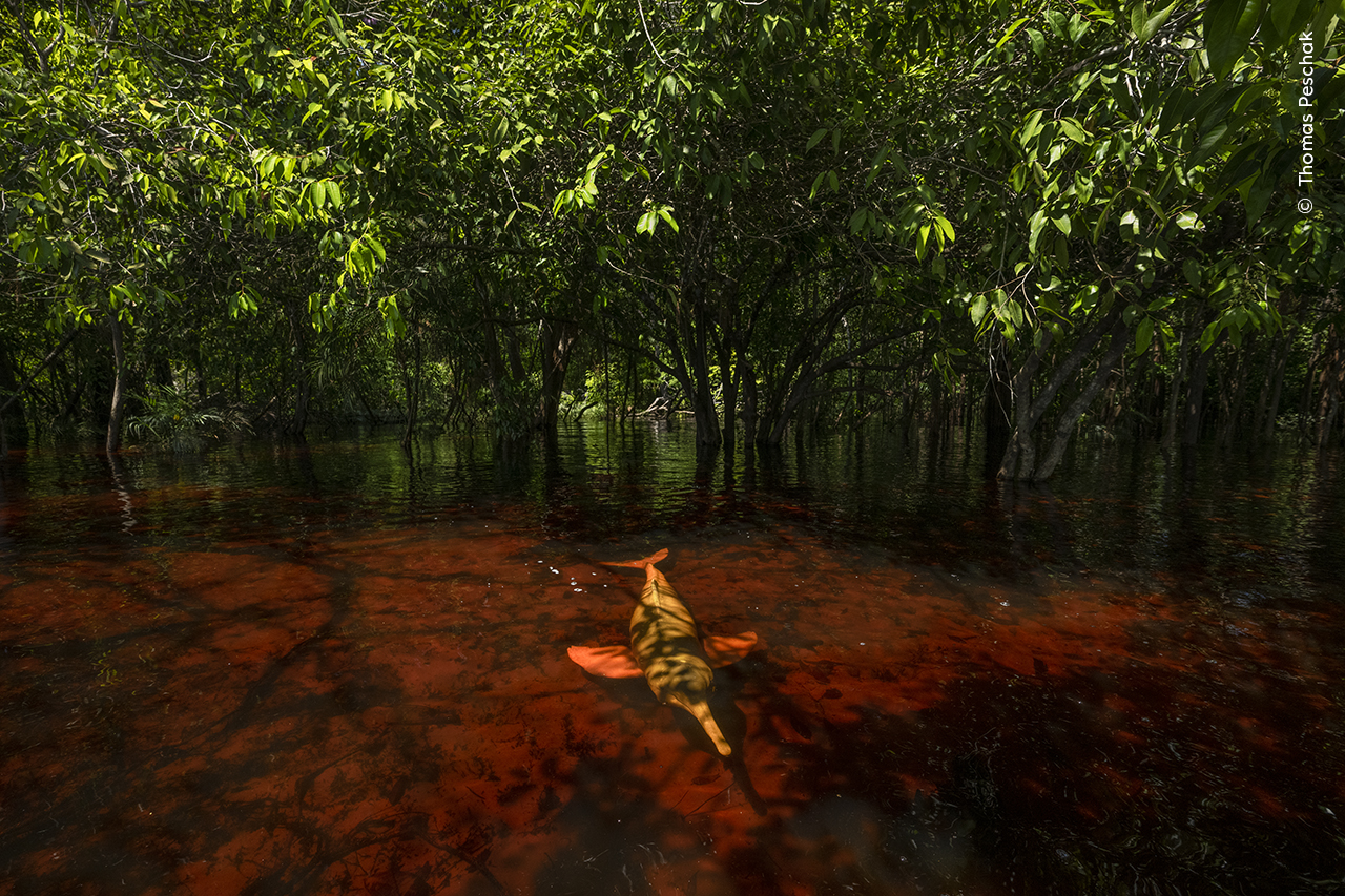 Δελφίνια του Δάσους. Νικητής, Βραβείο Photojournalist Story. Ο Τόμας Πέσακ κατέγραψε τη σχέση ανάμεσα στα απειλούμενα δελφίνια του Αμαζονίου, γνωστά και ως μπότος ή ροζ δελφίνια του ποταμού, και τους ανθρώπους με τους οποίους μοιράζονται το υδάτινο σπίτι τους. Το δελφίνι του Αμαζονίου είναι ένα από τα δύο είδη δελφινιών του γλυκού νερού που ζουν στις λεκάνες του Αμαζονίου και του Ορινόκο. Μόνο αυτό το είδος έχει εξελιχθεί για να εξερευνήσει τον εποχικά πλημμυρισμένο δασικό βιότοπο