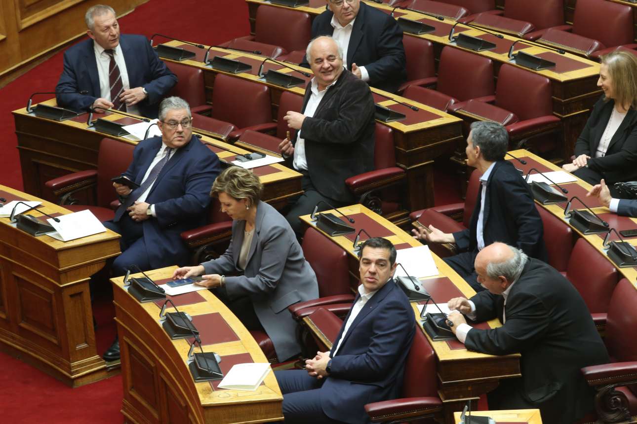 Μακριά και αγαπημένοι. Για λόγους ασφαλείας και περιορισμού της διασποράς του κορονοϊού, στην Ολομέλεια ήταν μόνοι οι αρχηγοί των κομμάτων, οι κοινοβουλευτικοί εκπρόσωποι και λίγοι άλλοι βουλευτές όλοι καθισμένοι σε υπολογίσιμη απόσταση ο ένας από τον άλλον
