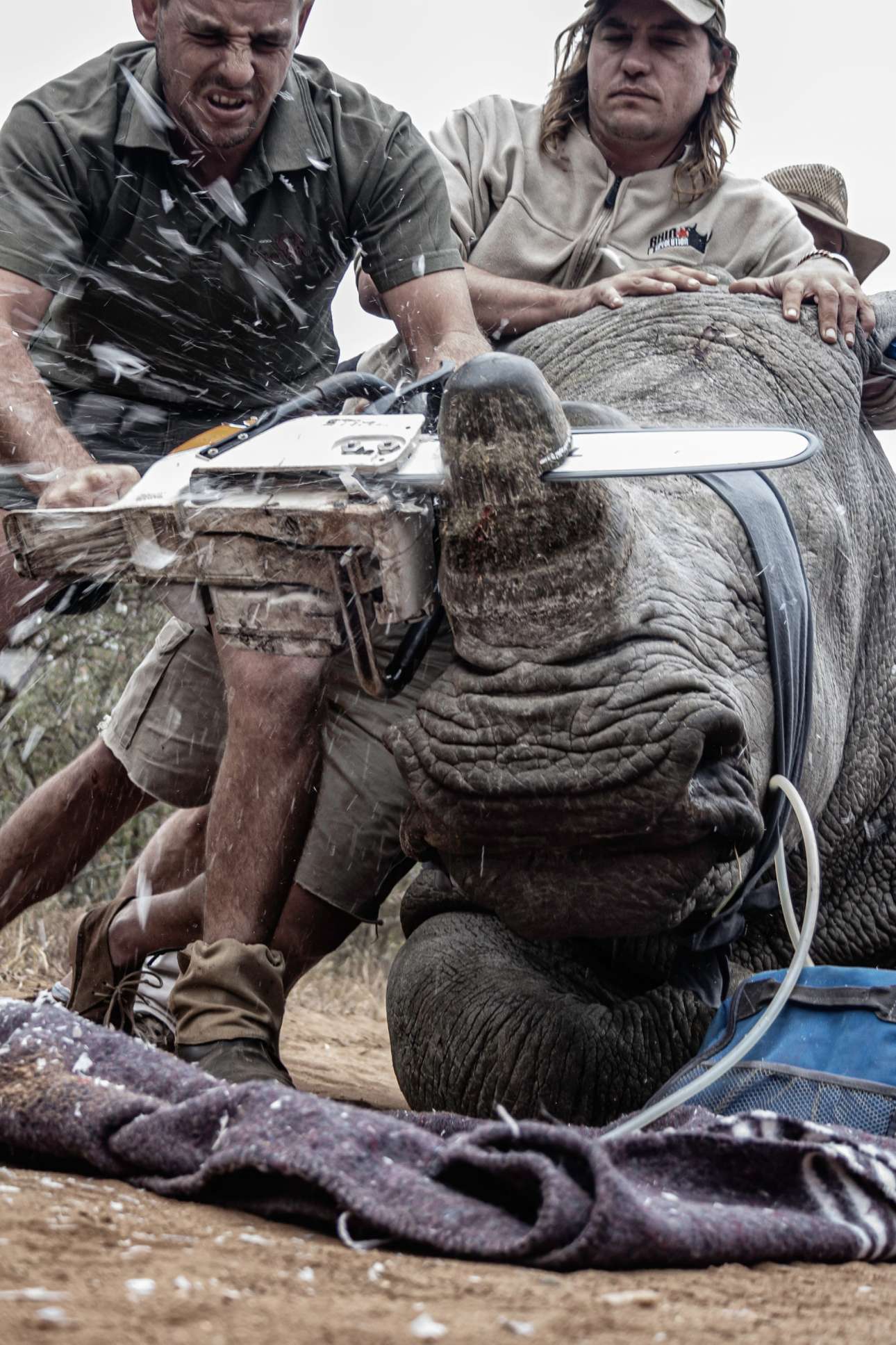Νεαρός Φωτογράφος Περιβάλλοντος της Χρονιάς: δύο άνδρες κόβουν το κέρατο ρινόκερου στη Νότια Αφρική, προκειμένου να μην πέσει θύμα λαθροκυνηγών. Τα επίπεδα λαθροθηρίας είναι τόσο υψηλά που οι ειδικοί συστήνουν την αφαίρεση του κεράτου κάθε 12-14 μήνες, ώστε να αποτρέπονται αποτελεσματικά οι λαθροκυνηγοί