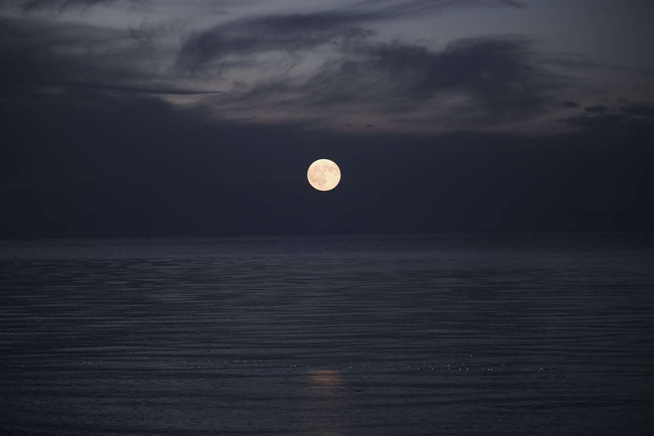 Παιχνίδια με τον φακό. Η πανσέληνος βυθίζεται στην θάλασσα του Κορινθιακού κόλπου