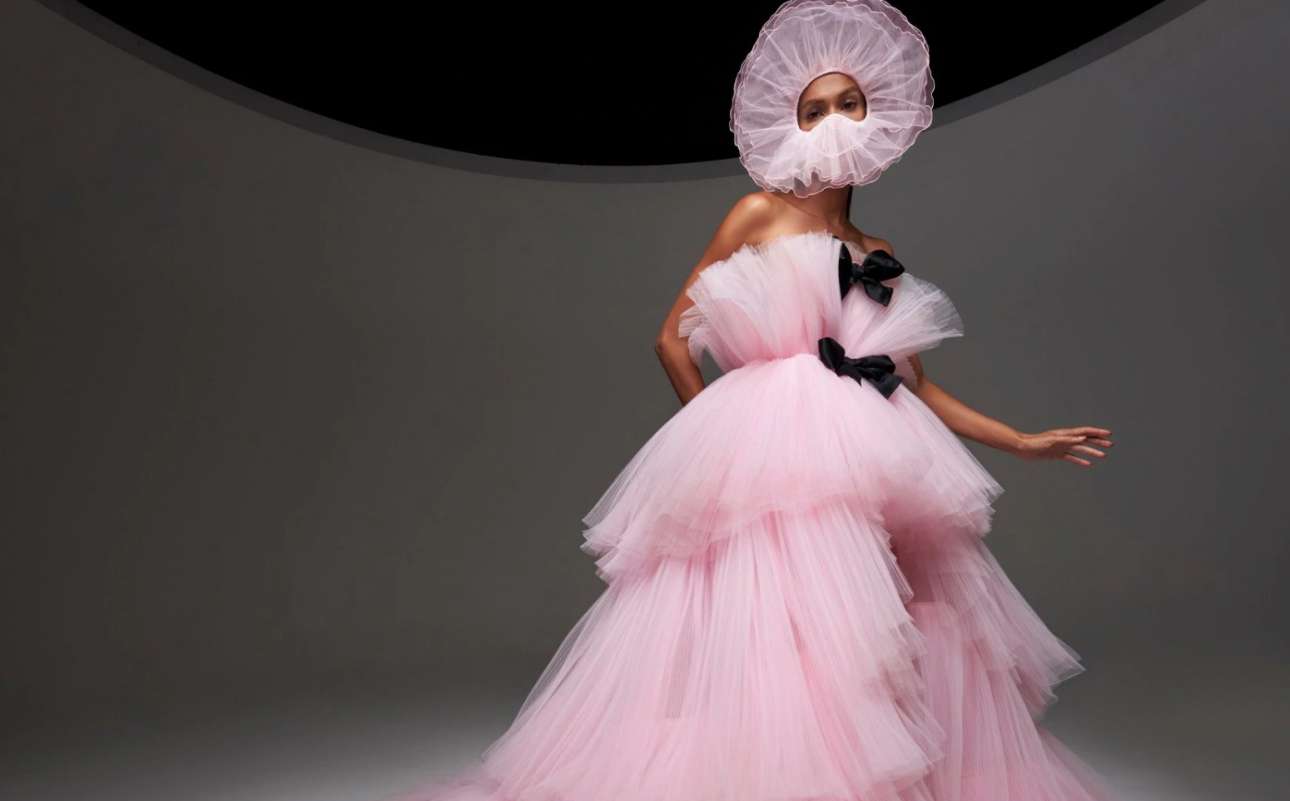 Οι αφράτες, τούλινες τουάλετες σε αποχρώσεις του ροζ και φούξια παραμένουν το σήμα κατατεθέν του οίκου ακόμα και εν μέσω πανδημίας