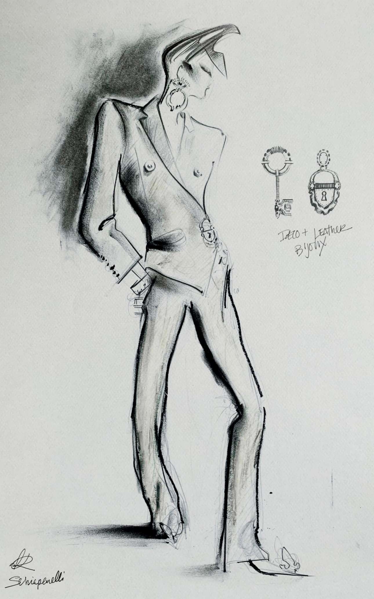 Ο σχεδιαστής Ντάνιελ Ρόζμπερι του οίκου Schiaparelli παρουσίασε σχέδια με δυναμικά σταυρωτά κοστούμια που θύμιζαν «Δυναστεία»