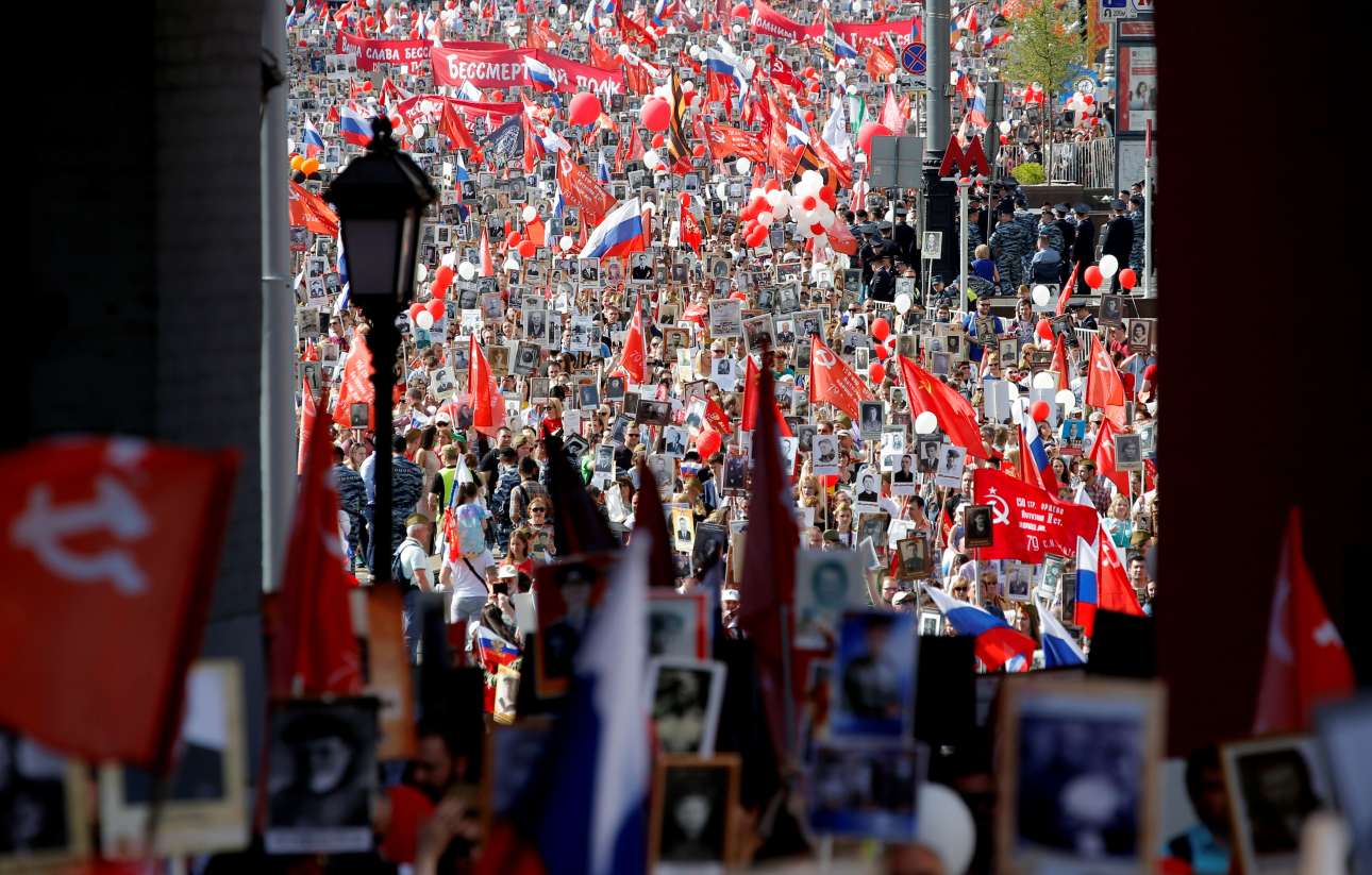 Είναι ημέρα γιορτής. Και μνήμης. Η 9η Μαΐου εορτάζεται με εντυπωσιακές παρελάσεις στη Μόσχα, είναι η επέτειος του θριάμβου του Κόκκινου Στρατού επί της χιτλερικής Γερμανίας. Η στρατιωτική παρέλαση είναι κλασικά μια επίδειξη δύναμης της ρωσικής πολεμικής μηχανής – έτσι και εφέτος στην 71 επέτειο της νίκης επί των Γερμανών. Αυτό ωστόσο που έχει ιδιαίτερο ανθρωπολογικό ενδιαφέρον είναι η παρέλαση των βετεράνων του Β’ Παγκοσμίου Πολέμου και των επιγόνων τους. Μεταξύ αυτών εφέτος ήταν και ο πρόεδρος της Ρωσίας Βλαντίμιρ Πούτιν, ο οποίος παρέλασε κρατώντας το πορτρέτο του πατέρα του