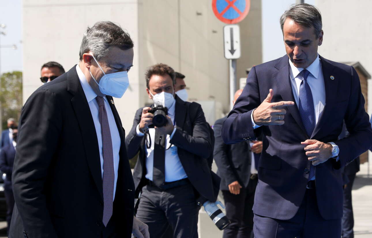Ο Κυριάκος Μητσοτάκης με τον ιταλό ομόλογό του Μάριο Ντράγκι, με τον οποίο είχε και κατ' ιδίαν συνάντηση στο περιθώριο της Συνόδου
