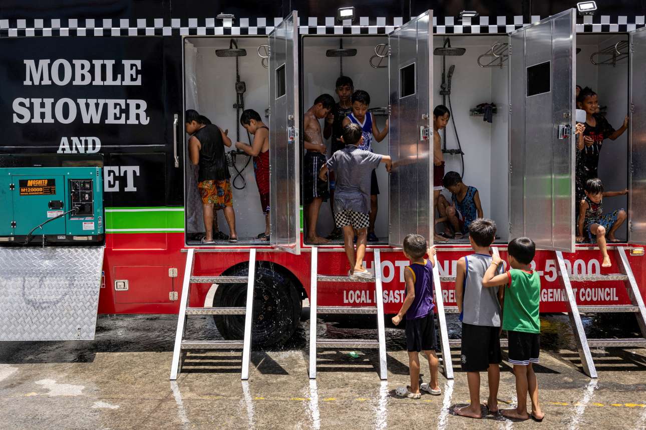 Με ειδικό φορτηγό, εξοπλισμένο με ντουζιέρες, δρόσισε η φιλιππινέζικη διοίκηση τους πολίτες λόγω μαγιάτικου καύσωνα – η πιτσιρικαρία το τίμησε και μάλλον απόλαυσε παιχνιδιάρικα την εμπειρία