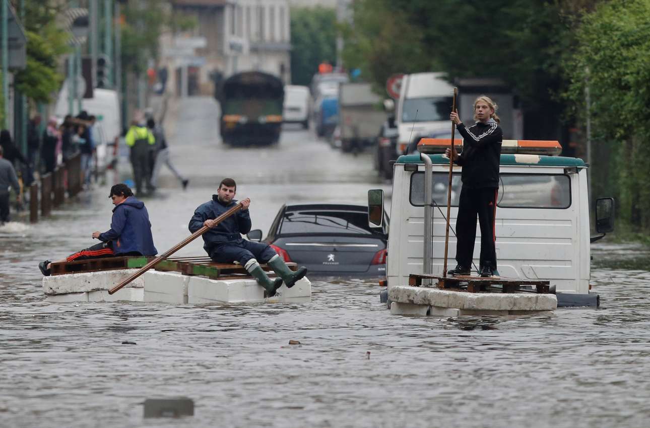 Η περίφημη Νοτρ Νταμ «παρακολουθεί» τον Σηκουάνα να «φουσκώνει» απειλητικά. Δίπλα από τον υπερχειλισμένο ποταμό έχουν σταθμεύσει εξωλέμβιες βάρκες για να χρησιμοποιηθούν αν χρειαστεί