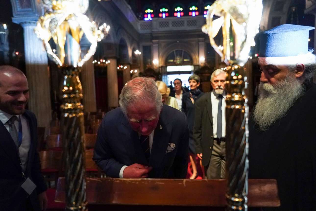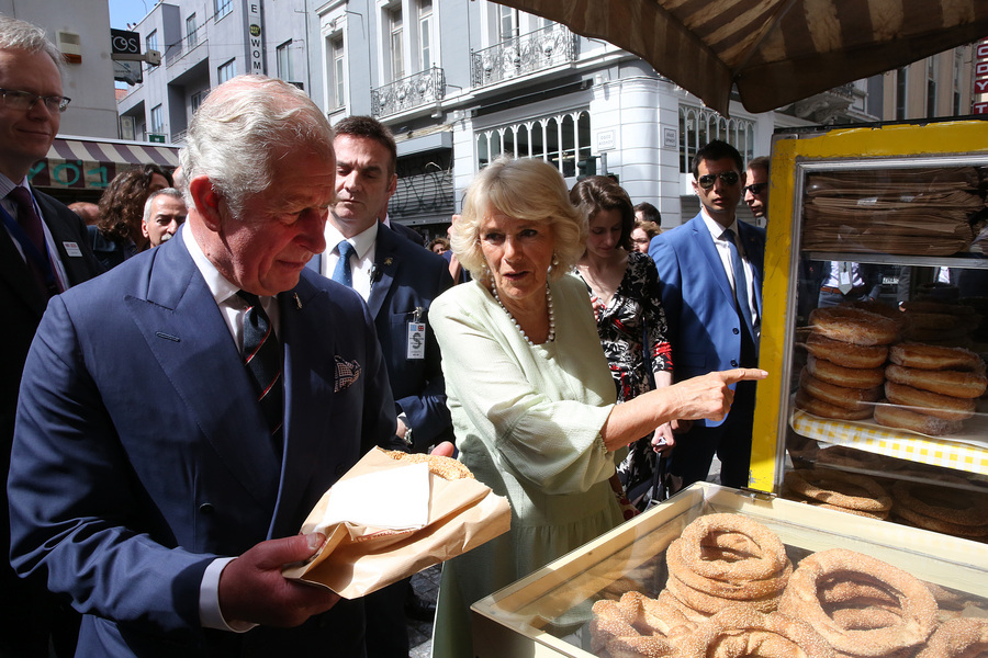 Μετά τη συνάντησή του στην Αρχιεπισκοπή με τον Ιερώνυμο ο πρίγκιπας της Ουαλίας είχε την ευκαιρία να απολαύσει μαζί με τη δούκισσα της Κορνουάλης μία βόλτα στο κέντρο της Αθήνας. Ηπιαν καφέ στην πλατεία Αγίας Ειρήνης, αγόρασαν κουλούρια και ξεναγήθηκαν στον ναό της Καπνικαρέας, προκαλώντας την έκπληξη των περαστικών