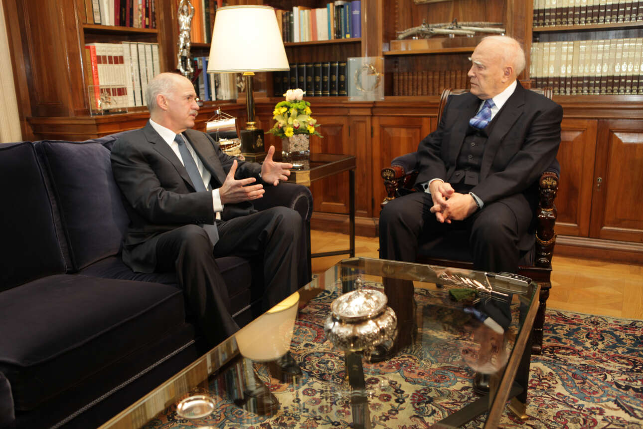 2011. Ο Πρόεδρος της Δημοκρατίας Κάρολος Παπούλιας υποδέχεται στο Προεδρικό Μέγαρο τον Πρωθυπουργό Γιώργο Παπανδρέου