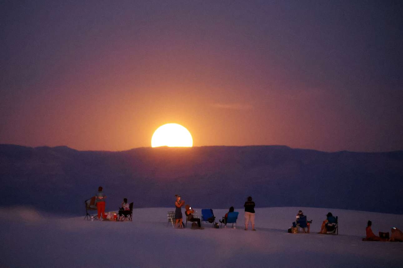 H ανατολή της Πανσελήνου του Αυγούστου στο εθνικό πάρκο του Γουάιτ Σαντ στο Νέο Μεξικό των ΗΠΑ