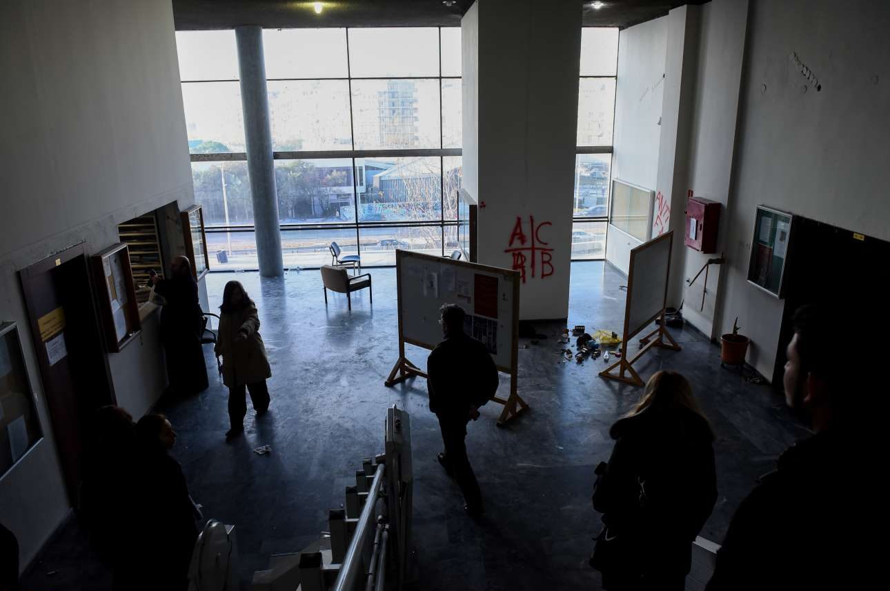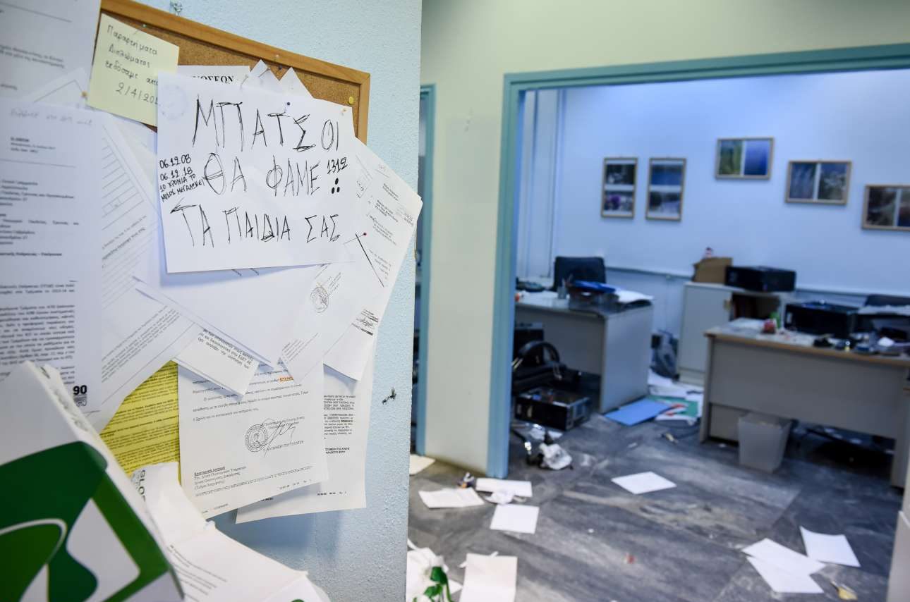 Βανδαλισμοί στις αίθουσες και τα γραφεία, ξηλωμένα και κατεστραμμένα έπιπλα και συσκευές άφησαν οι κουκουλοφόροι οι οποίοι είχαν κλειστεί στη σχολή μετά τα επεισόδια που ακολούθησαν τις πορείες για τα 10 χρόνια από τη δολοφονία του Αλέξανδρου Γρηγορόπουλου