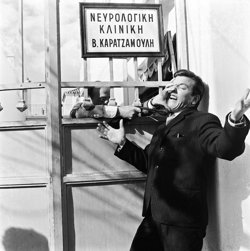 Στα γυρίσματα της «Χαρτοπαίκτρας» (1965) του Δαλιανίδη. Προσοχή στη λεπτομέρεια: τα έπιπλα είναι πάνω σε παλέτες ώστε να μη φαίνεται τόσο θηριώδης η Νοταρά