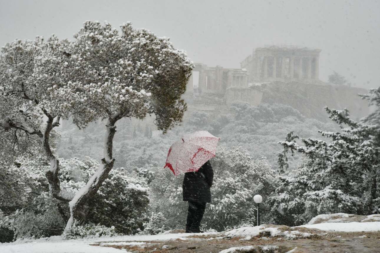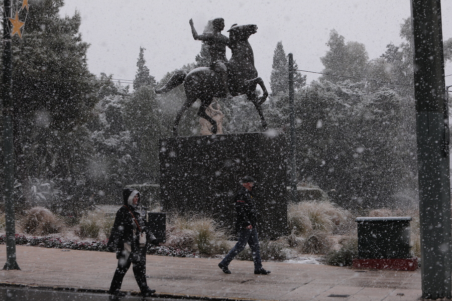 Υστερα από 342 ημέρες –τόσες πέρασαν από τη μέρα που κακοκαιρία «Μήδεια» έπνιξε την Αττική στο χιόνι– η περιοχή της πρωτεύουσας ντύθηκε ξανά στα λευκά, αυτή τη φορά με τη χιονοθύελλα της «Ελπίδας». Δεν ήταν παντού ειδυλλιακό το σκηνικό· οι κεντρικές οδικές αρτηρίες ήταν επί ώρες μποτιλιαρισμένες από οδηγούς που ξεκίνησαν να πάνε στις δουλειές τους και μετά δεν μπορούσαν να επιστρέψουν. Και το χιόνι συνέχιζε να πέφτει πυκνό…