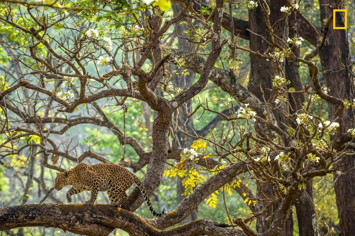 Μία πανέμορφη λεοπάρδαλη, ένα δέντρο με λευκά άνθη, απαλό φως του ήλιου: ένα τέλειο καρέ που ο φωτογράφος έψαχνε όμοιο του για τρία χρόνια