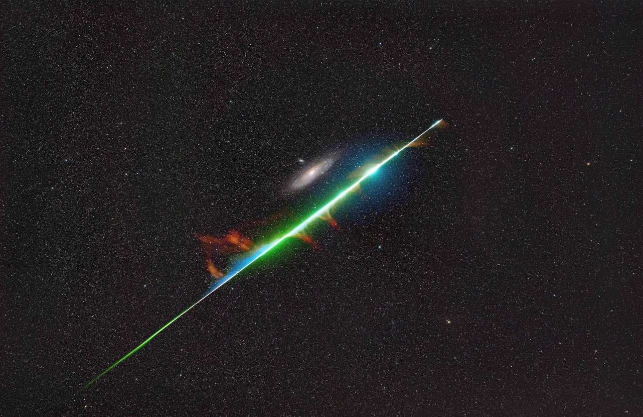Αναπάντεχη συνάντηση. Οι κινέζοι φωτογράφοι σχεδιάζαν να τραβήξουν ένα κοντινό πλάνο του Γαλαξία Ανδρομέδα (M31). Μόνο το επόμενο πρωινό συνειδητοποίησαν πως είχαν συλλάβει τυχαία τη στιγμή που μια πύρινη σφαίρα από Περσείδες (βροχή διαττόντων αστέρων) έμοιαζε να γδέρνει τον M31 – και αυτή ήταν μια πολύ ευχάριστη έκπληξη