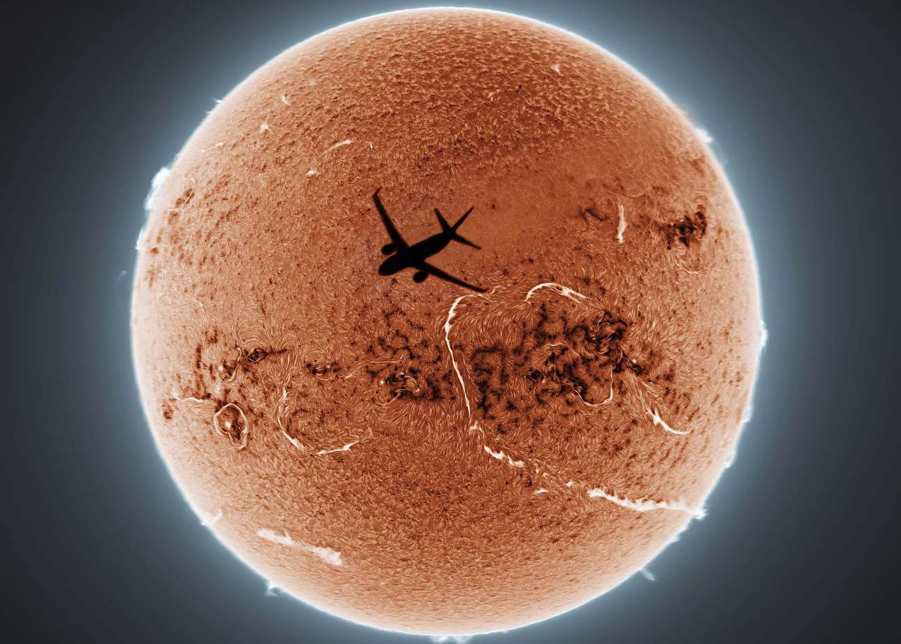 «Ανθρωπος και Διάστημα, η στιγμή και η αιωνιότητα». Κατά τη διάρκεια μιας συνηθισμένης παρατήρησης της ηλιακής χρωμόσφαιρας, ο Ζανγκ Τανγκουάνγκ συνέλαβε αυτό το μοναδικό στιγμιότυπο