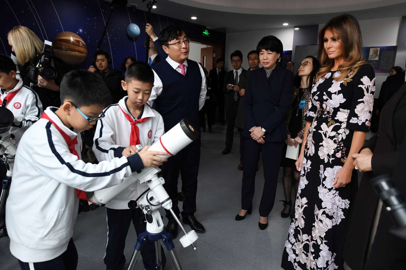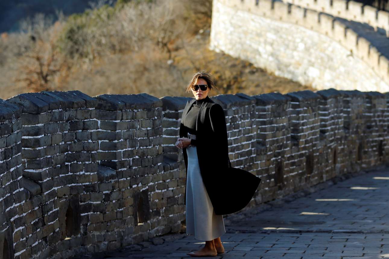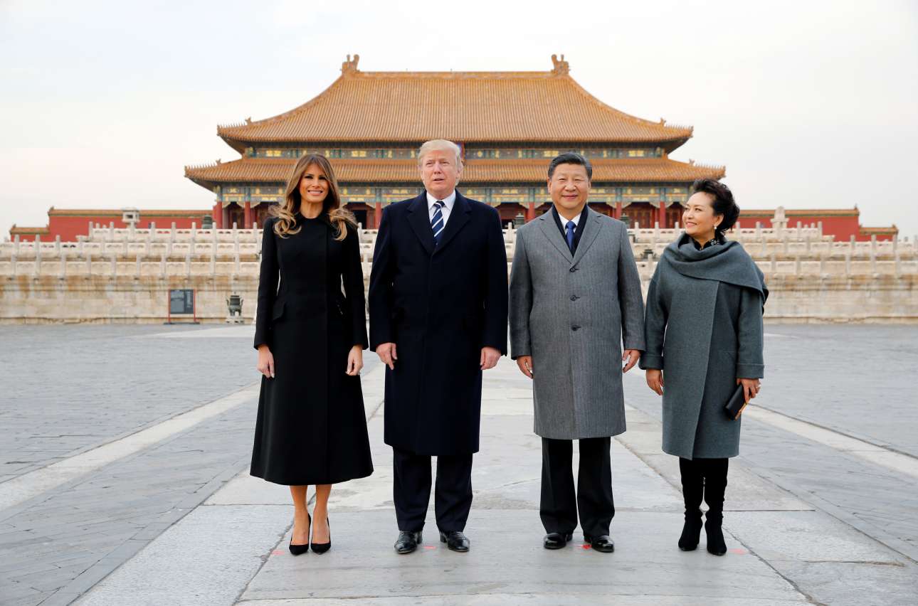 Αναμνηστική φωτογραφία για τα δύο προεδρικά ζευγάρια, με φόντο την Απαγορευμένη Πόλη του Πεκίνου. Η Μελάνια ξεχωρίζει μέσα στο κομψό παλτό της