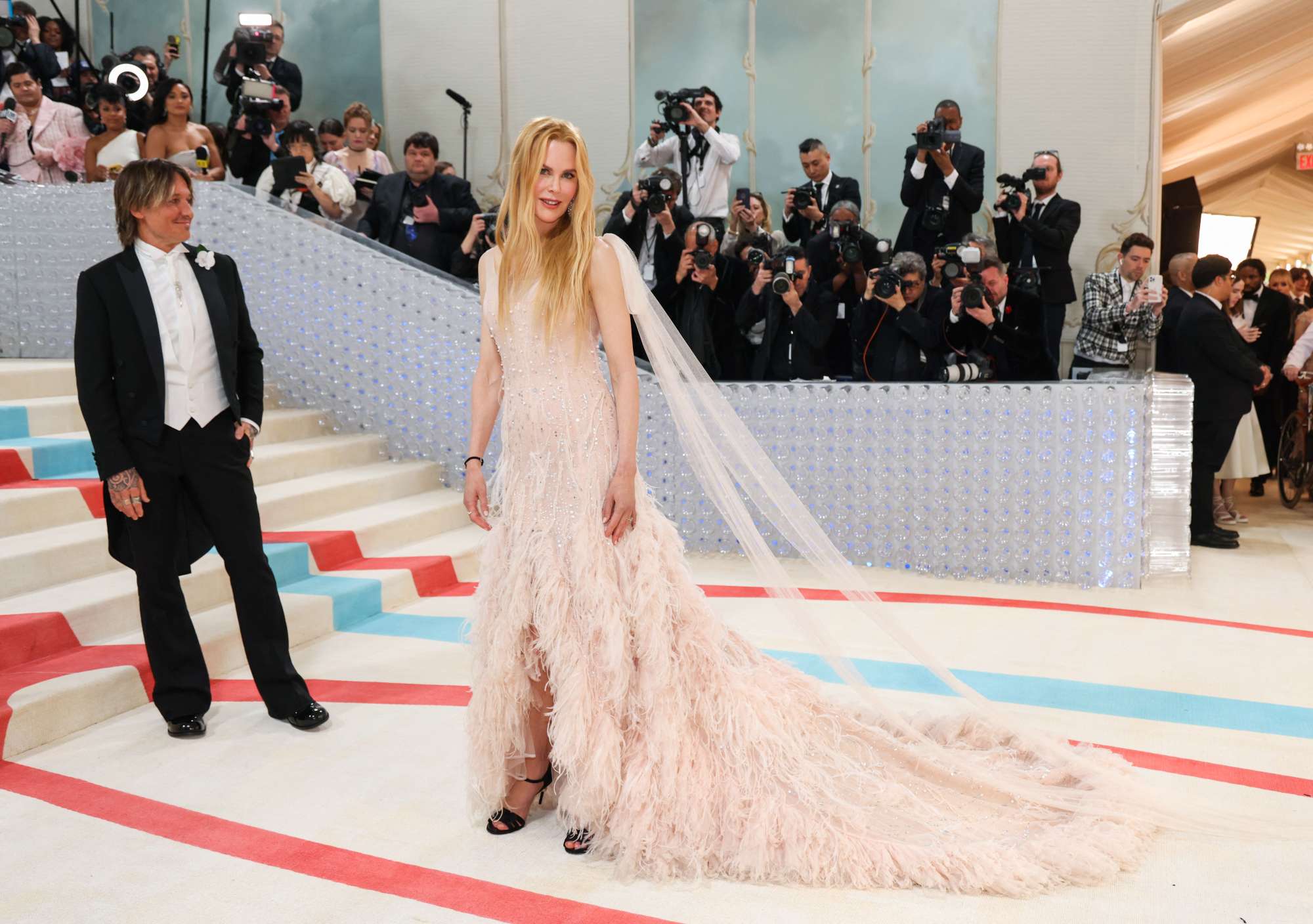 Ο τραγουδιστής Κιθ Ούρμπαν και η σύζυγός του ηθοποιός Νικόλ Κίντμαν με την τουαλέτα από μεταξωτό τούλι που φορούσε στη διαφήμιση του Chanel No 5 σε σκηνοθεσία του Μπαζ Λούρμαν. Το φόρεμα είναι κεντημένο με 250 φτερά και περισσότερα από 3000 στρας και πούλιες