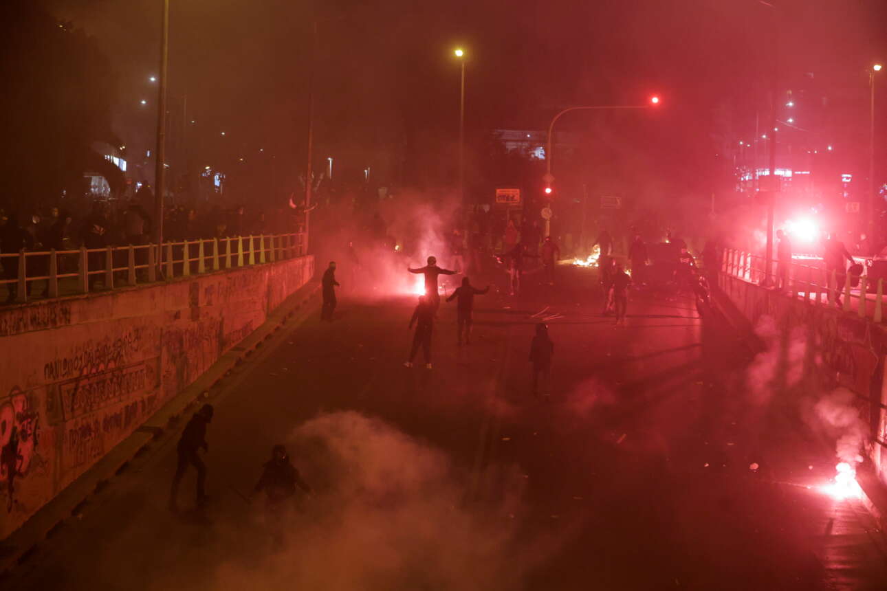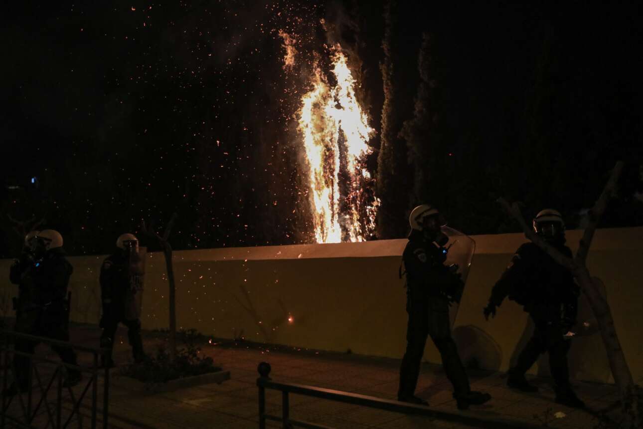Δυνάμεις των ΜΑΤ αποκρούουν τους κουκουλοφόρους που επιχείρησαν να επιτεθούν στο ΑΤ Νέας Σμύρνης