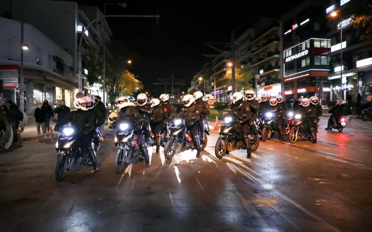 Ανδρες της Αστυνομίας επί της Λεωφόρου Ελευθερίου Βενιζέλου. Υπήρξαν καταγγελίες πως μετά την επίθεση στον 24χρονο αστυνομικό, υπήρξαν περιστατικά υπερβολικής βίας κατά τη διάρκεια συλλήψεων υπόπτων