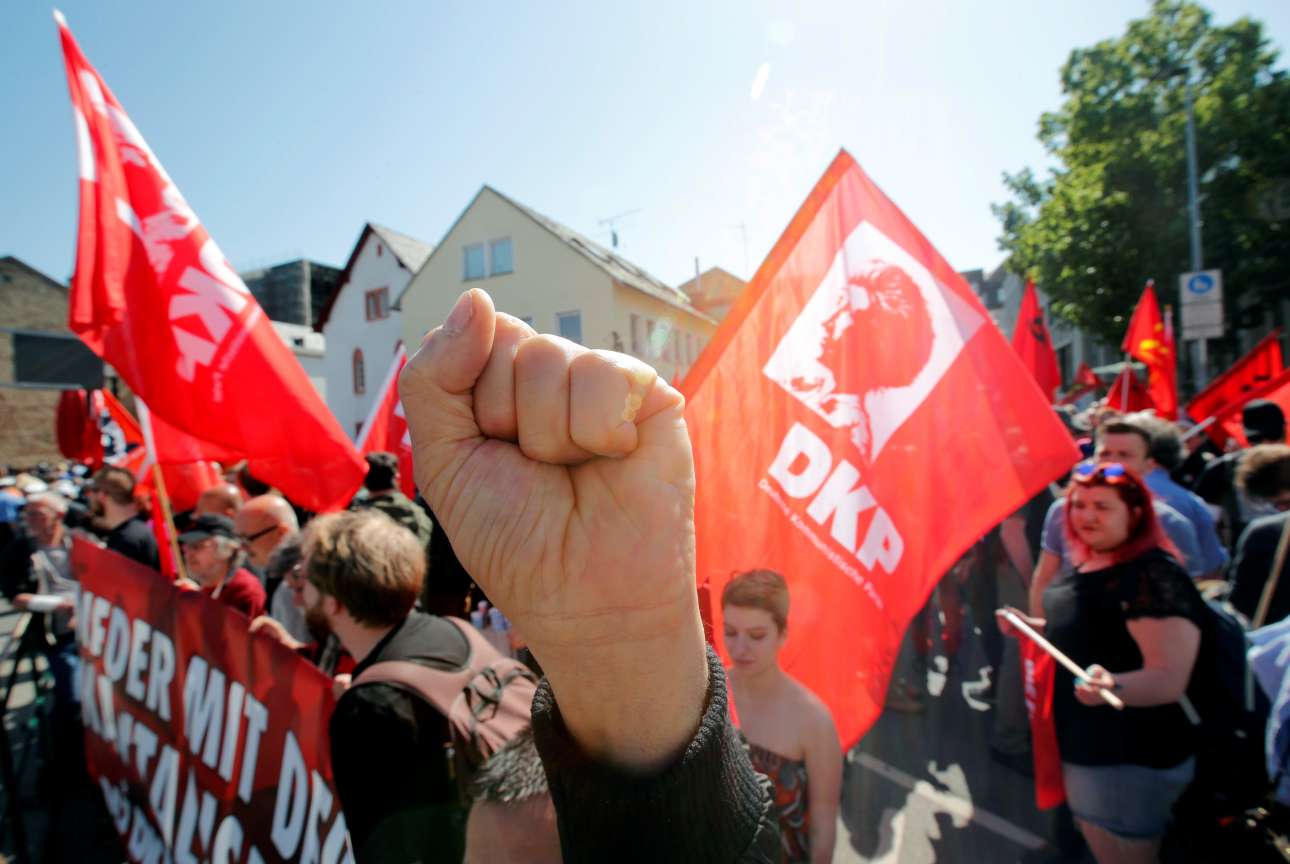 Την ίδια ώρα που γίνονταν τα αποκαλυπτήρια, νοσταλγοί του από το ΚΚ Γερμανίας διαδήλωναν στο Τριρ