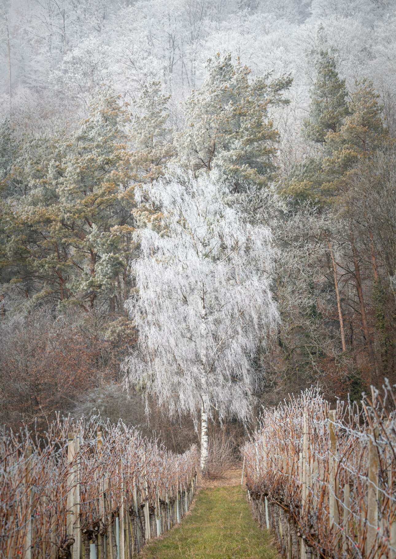 Πρώτη θέση στην κατηγορία Δέντρα και Δάση: πάγος καλύπτει μια ασημένια σημύδα και αμπέλια, κοντά στη Ζυρίχη της Ελβετίας, πριν βγει ο ήλιος και τον λιώσει