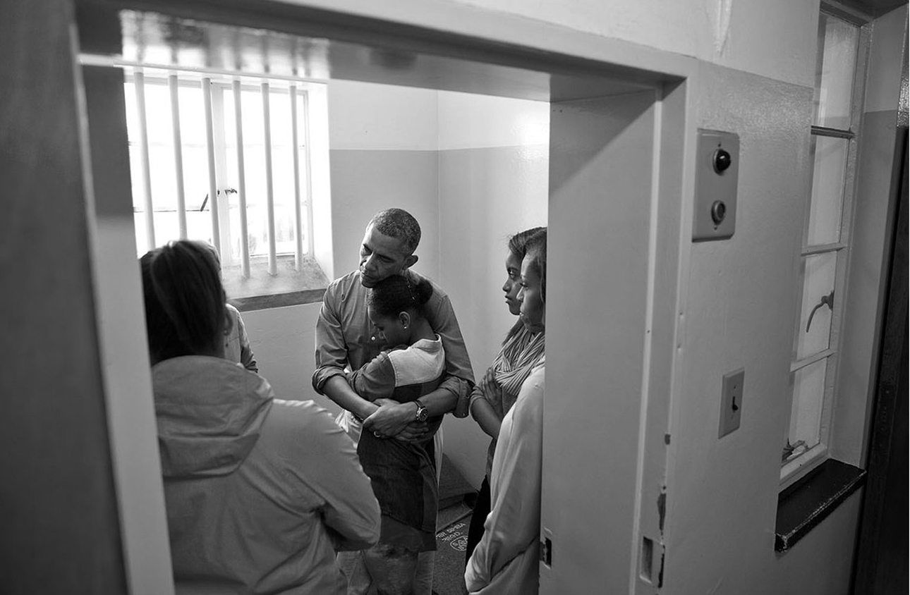 Η οικογένεια Ομπάμα επισκέπτεται το κελί του Νέλσον Μαντέλα στη Νότια Αφρική, σε κλίμα βαθιάς συγκίνησης