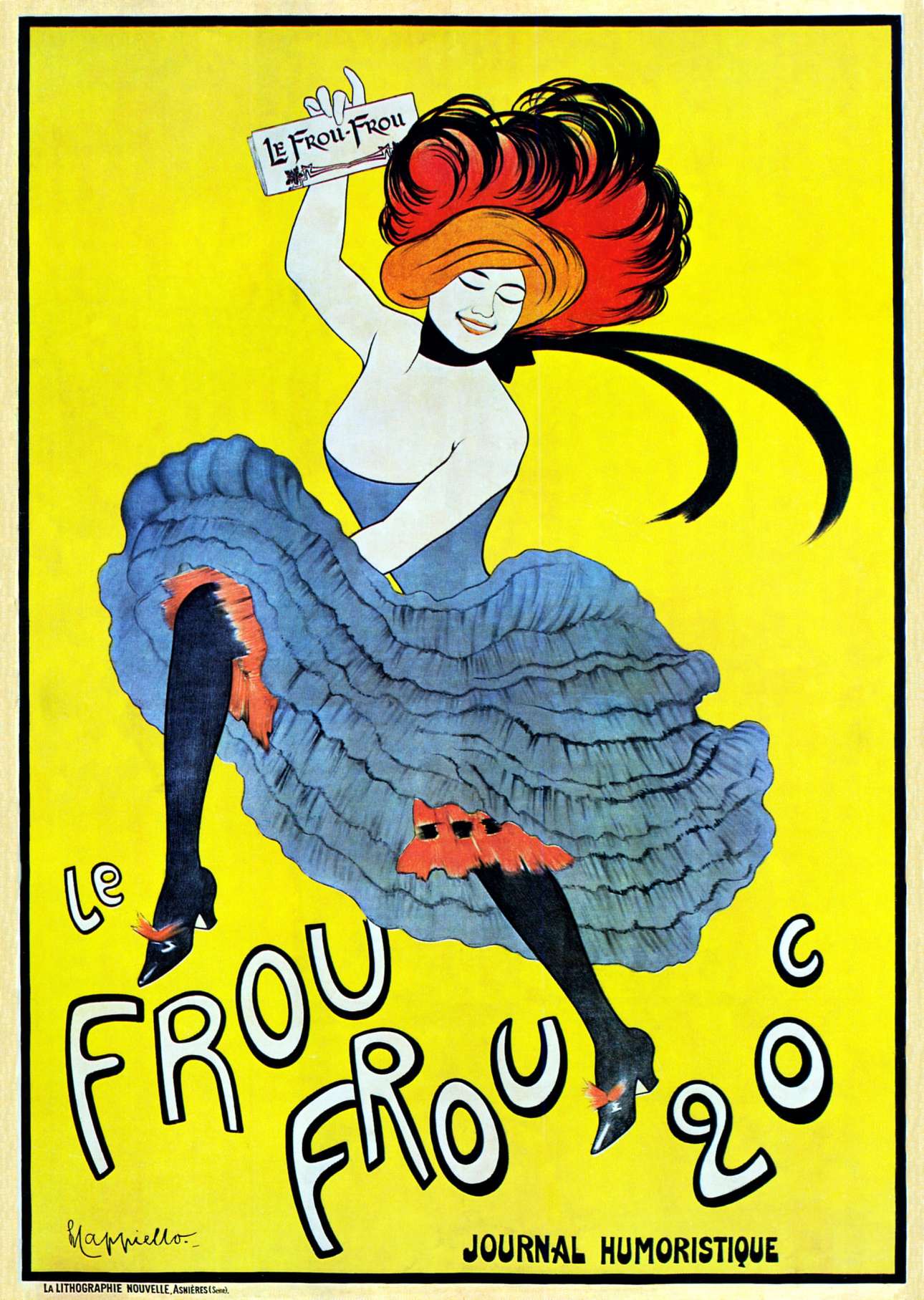 Οι μοντέρνες διαφημιστικές τεχνικές που αναπτύχθηκαν στα τέλη του 1890 χρησιμοποιούσαν την τέχνη για να πουλήσουν προϊόντα. Χαρακτηριστική του είδους είναι η παραπάνω αφίσα, σχεδιασμένη από τον Λεονέτο Καπιέλο το 1899 για το γαλλικό περιοδικό Le Frou Frou