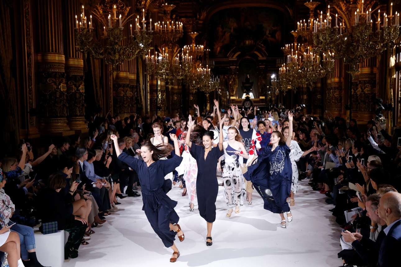 4 Οκτ. Ετσι τσαλακώνεται η εικόνα του μοντέλου που διασχίζει την πασαρέλα με προσεκτικά, μελετημένα βήματα. Οι ψηλές θεές που παρουσιάζουν την ανοιξιάτικη/ καλοκαιρινή συλλογή της βρετανίδας σχεδιάστριας Στέλλα Μακάρτνεϊ, στην Εβδομάδα Μόδας στο Παρίσι τρέχουν, τινάζουν τα χέρια στον αέρα και ζητωκραυγάζουν μαζί με το κοινό