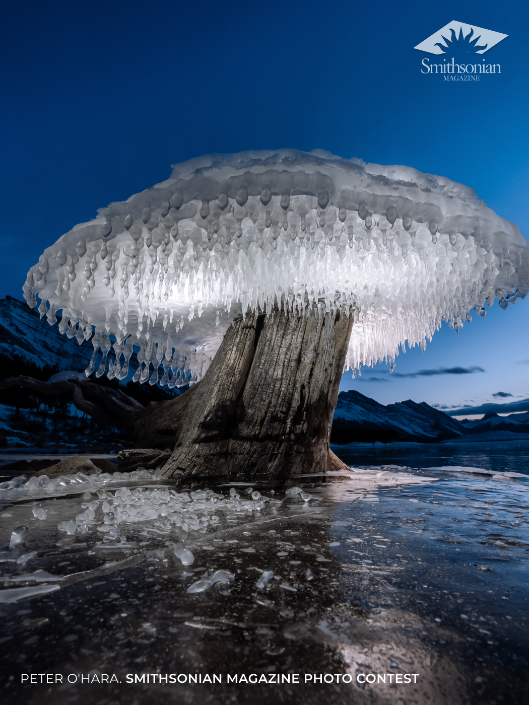 Αυτή η φωτογραφία, που θυμίζει παγωμένο μανιτάρι δημιουργημένο από πάγο που λιώνει σχηματίζοντας δαντέλες, απαντά στο γιατί ο χειμώνας είναι μια από τις αγαπημένες εποχές του Πίτερ Ο’Χάρα για φωτογράφιση. Ποτέ δεν ξέρεις τι θαύματα θα δημιουργήσει η φύση