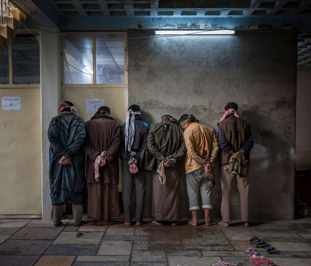 Κατηγορία Επικαιρότητα και Ειδήσεις, «Ανάμεσα σε διασταυρούμενα πυρά». Με δεμένα χέρια και μάτια, Ιρακινοί από τη Χαουίτζα περιμένουν να ανακριθούν σε βάση κοντά στο Κιρκούκ του Ιράκ, από κούρδους άνδρες της ασφάλειας