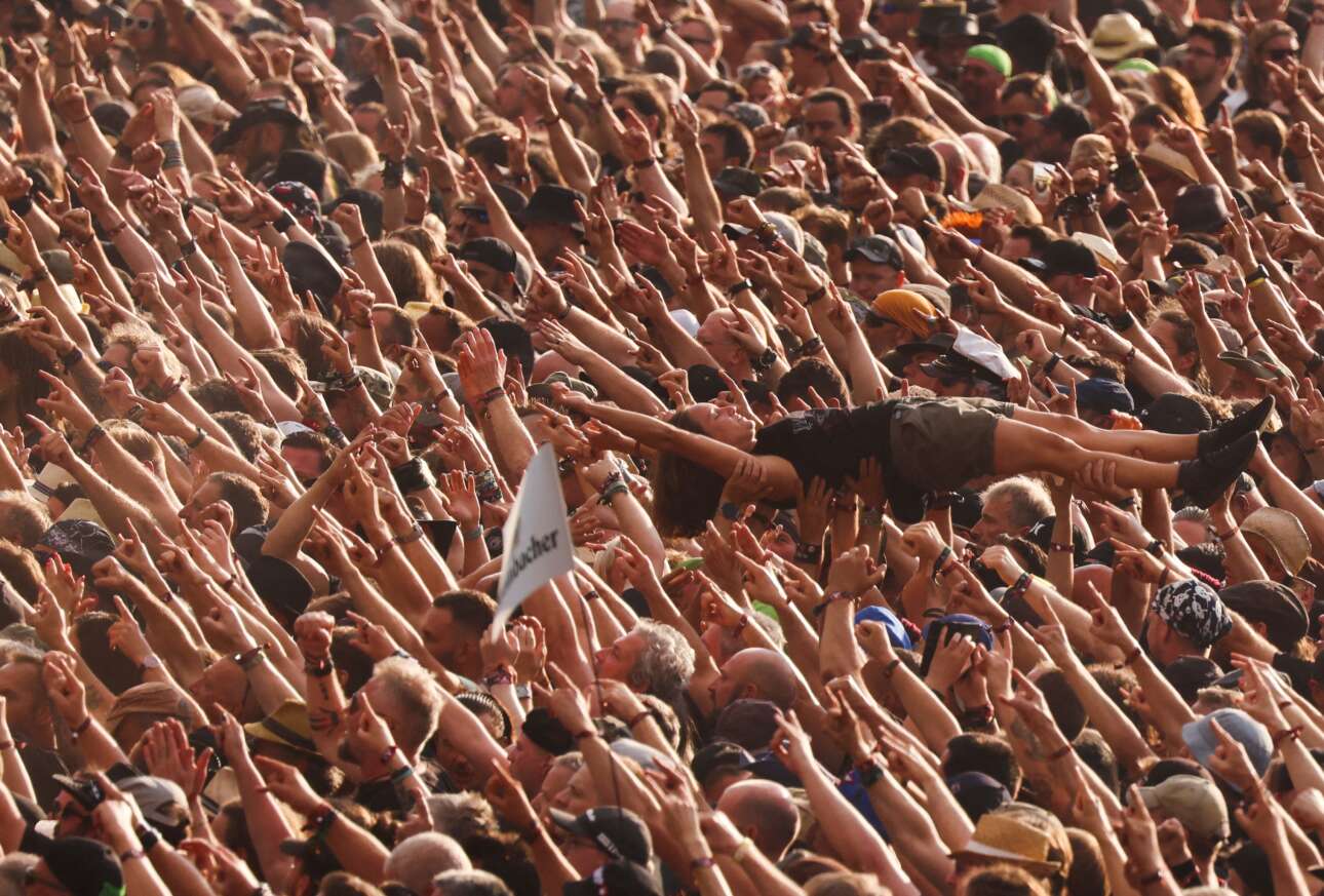 Μπορεί ο κόσμος να χάνεται, όμως οι «χεβιμεταλλάδες» χτενίζονται (όσοι παρέμειναν μακρυμάλληδες, τουλάχιστον) με τα χεράκια τους που σχηματίζουν τα «διαβολικά» κέρατα – σκηνή από «μουσικό φεστιβάλ» στο χωριό Βάκεν, όχι πολύ μακριά από το Αμβούργο