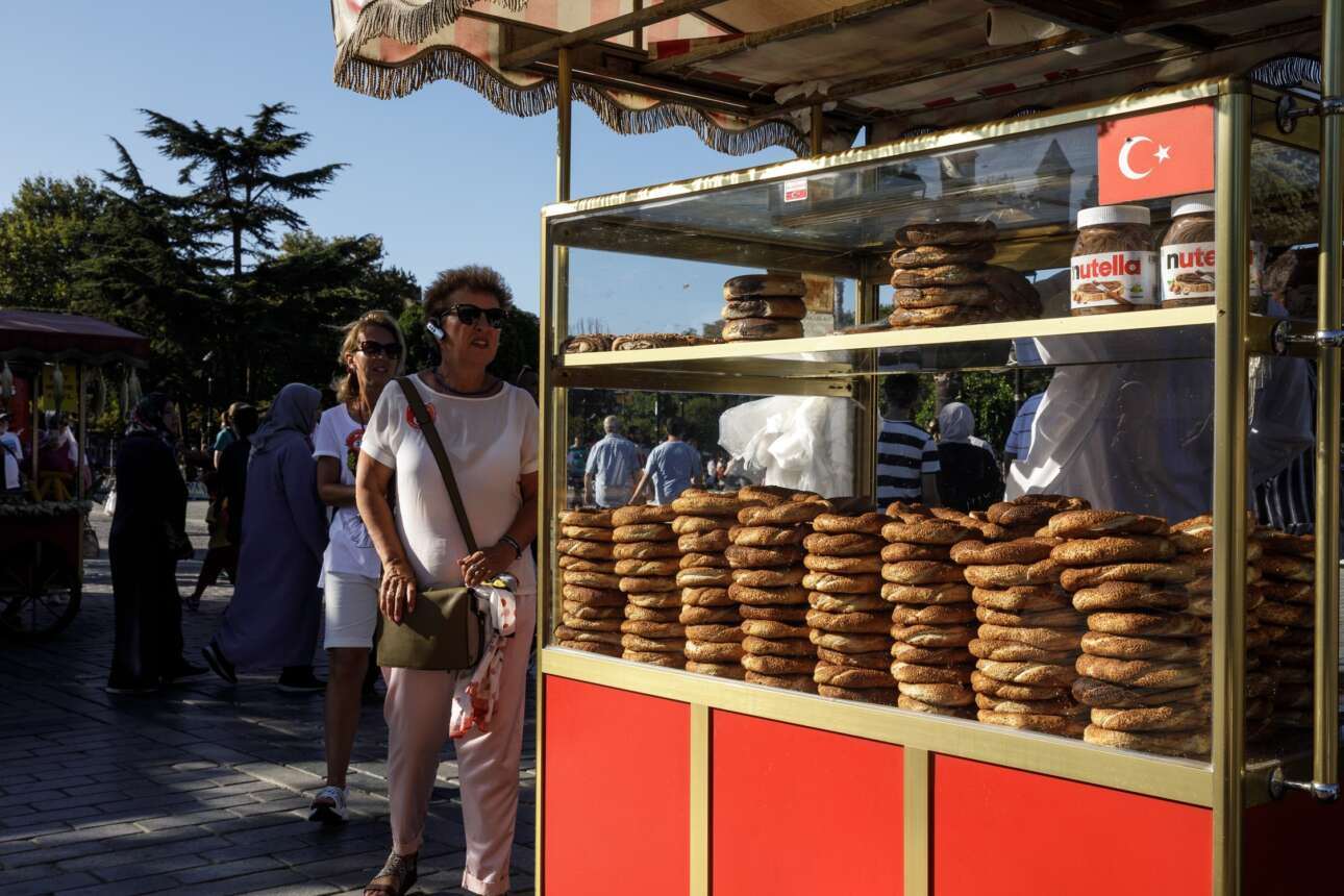 «Και στην Πόλη κουλουρτζής!» ήταν κάποτε στα ξεροβούνια η λαϊκή ευχή: μεγάλη η πολιτεία, εξασφαλισμένη η επιβίωση – για τους τούρκους βιοπαλαιστές πια τα πόστα, με καινοτομίες (προσέξτε το επάνω ράφι της προθήκης) και πελάτες τους τουρίστες