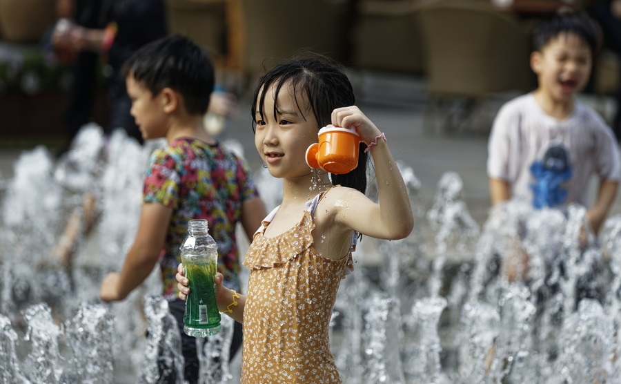 Κινεζάκια πλατσούριζαν ανέμελα στα νερά του πίδακα, κάπου στη Σανγκάη, ενόσω η Πελόζι βρισκόταν στην Ταϊβάν – οι ληξίαρχοι λένε ότι ο πληθυσμός της Κίνας μειώνεται, ωστόσο ποιος μπορεί να αρνηθεί ότι το μέλλον σε αυτά τα παιδιά ανήκει