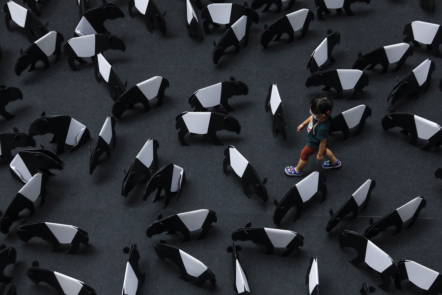 Και ο τάπιρος απειλείται με εξαφάνιση, αν και τρέφεται μόνο με ρίζες και φύλλα, και δεν πειράζει ψυχή ο δόλιος – τον θυμήθηκε ο μαλαισιανός καλλιτέχνης Νίκολας Λιμ που έστησε αυτήν την εγκατάσταση με «101 μινιατούρες» ταπίρων στην Κουάλα Λουμπούρ