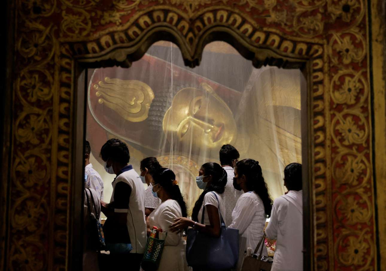 Καρέ από βουδιστικό ναό στο Κολόμπο της φτωχής Σρι Λάνκα – οι πιστοί προσέρχονται περνώντας μπροστά από το άγαλμα του Βούδα για να τιμήσουν το τρίπτυχο της πίστης τους: τη γέννησή του, τη φώτισή του, τον θάνατό του