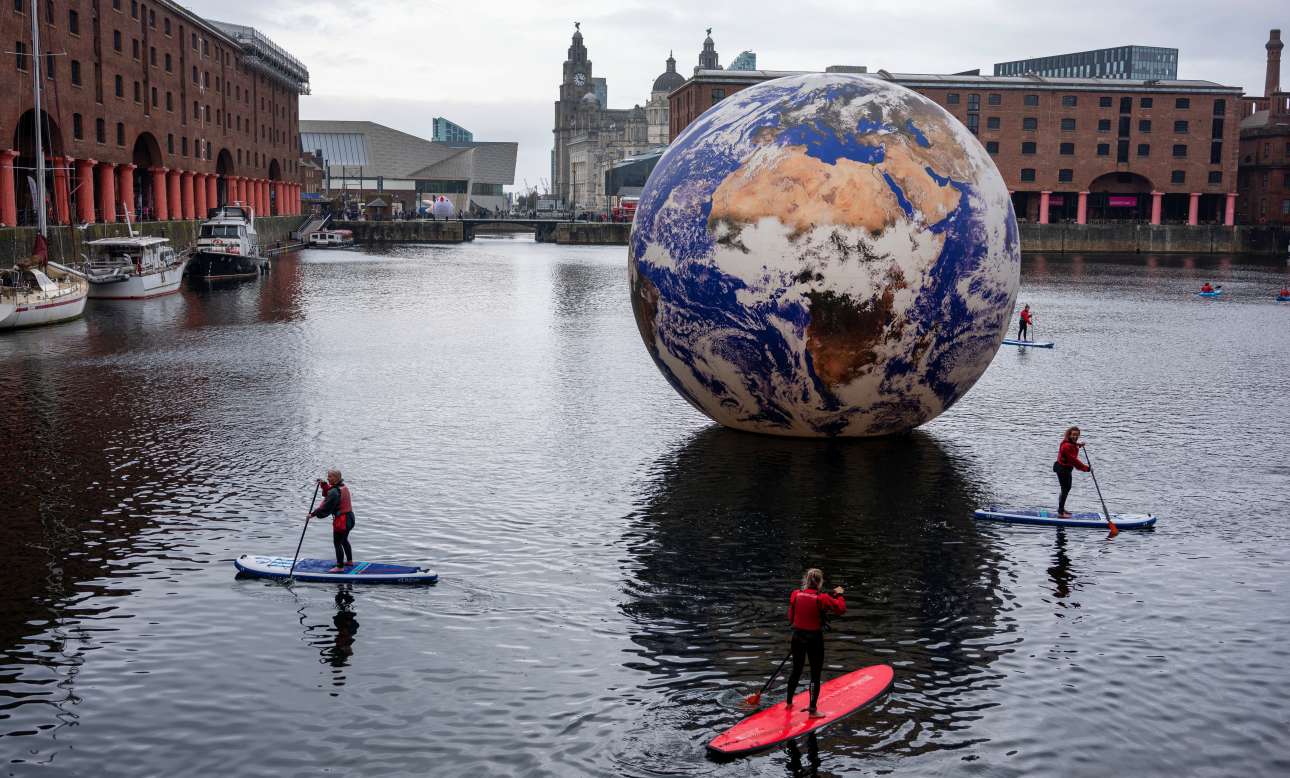 «Επιπλέουσα Γη» ονομάζεται αυτή η υδρόγειος που λιμνάζει στα νερά του Λίβερπουλ, στο Albert Dock, και προσελκύει κανό – πρόκειται για εγκατάσταση υπογεγραμμένη από τον καλλιτέχνη Λουκ Τζέραμ και ενταγμένη στο πλαίσιο των εορτασμών για τη διοργάνωση της εφετινής Eurovision, όπως λέει η λεζάντα του πρακτορείου (ο ποπ διαγωνισμός θα στολίσει το άλμπουμ της επόμενης εβδομάδας)