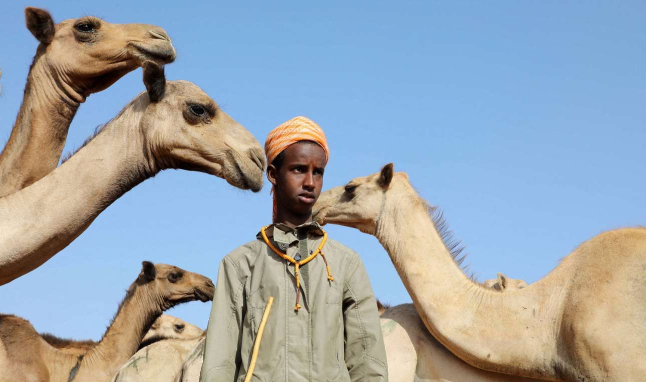 Δίπλα στις καμήλες του που θα περνούσαν από λεπίδι μωαμεθανικής πανήγυρης το βοσκόπουλο της Σομαλίας στάθηκε μελαγχολικό