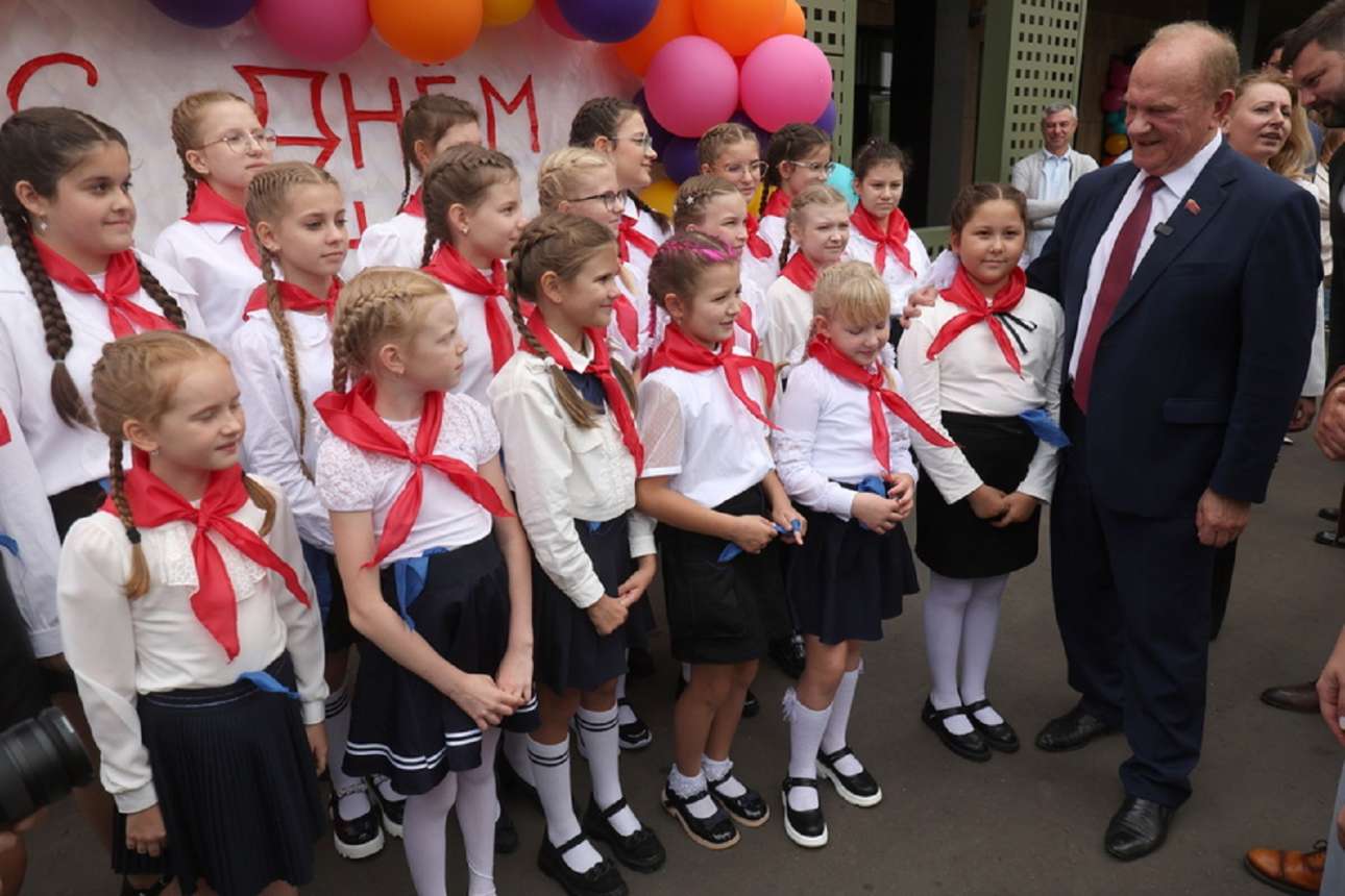 Ο ηγέτης του Ρωσικού ΚΚ Γκενάντι Ζιουγκάνοφ επιθεώρησε μοσχοβίτισσες μαθήτριες του Δημοτικού και ευχήθηκε «καλή πρόοδο»