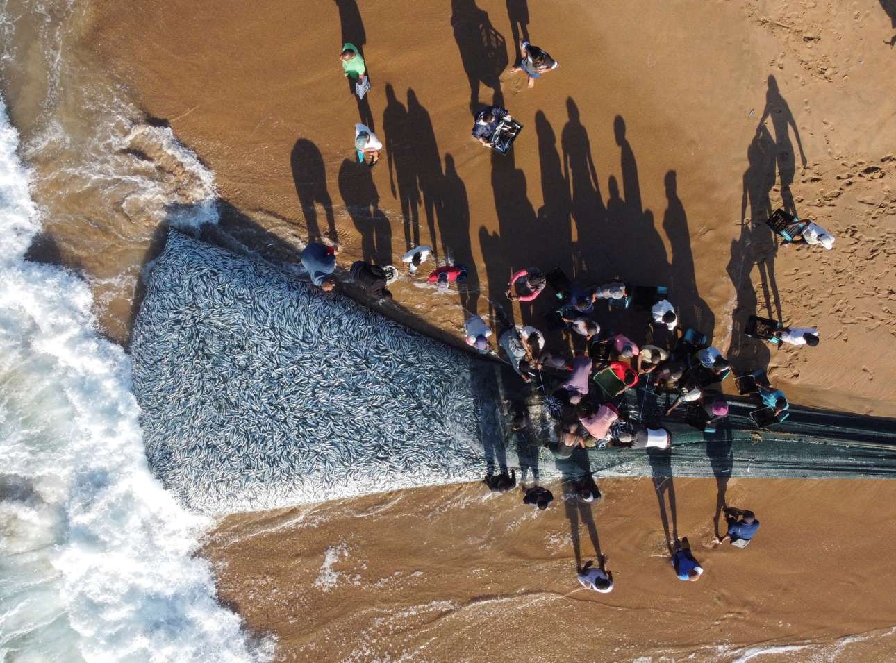 Δεν είναι μόνο στην κονσέρβα πατικωμένες οι σαρδέλες, αγκαλιά με την καυτερή πιπερίτσα τους καθώς αναμένουν το ούζο, αλλά «σαν σαρδέλες» στριμώχνονται και μέσα στο δίχτυ – καρέ από τη Νότια Αφρική, αναμνηστικό μιας καλής ψαριάς
