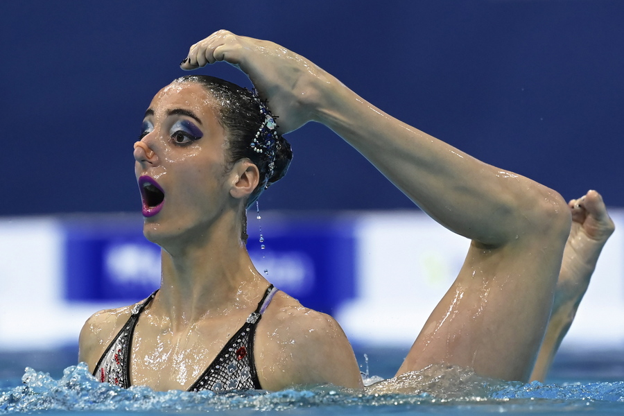 Οι δίδυμες αδελφές Αννα Μαρία και Ειρήνη Αλεξανδρή, οι οποίες εκπροσωπούν την Αυστρία, διαγωνίζονται στον τελικό καλλιτεχνικής κολύμβησης του 35ου Ευρωπαϊκού Πρωταθλήματος υγρού στίβου στη Βουδαπέστη